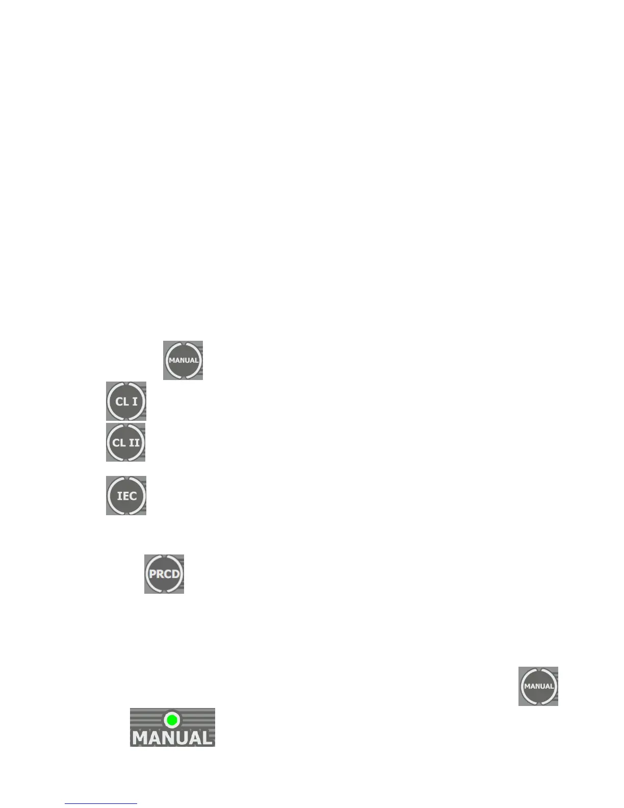 button (LED is on) to switch between all available tests (except for PRCD and IEC