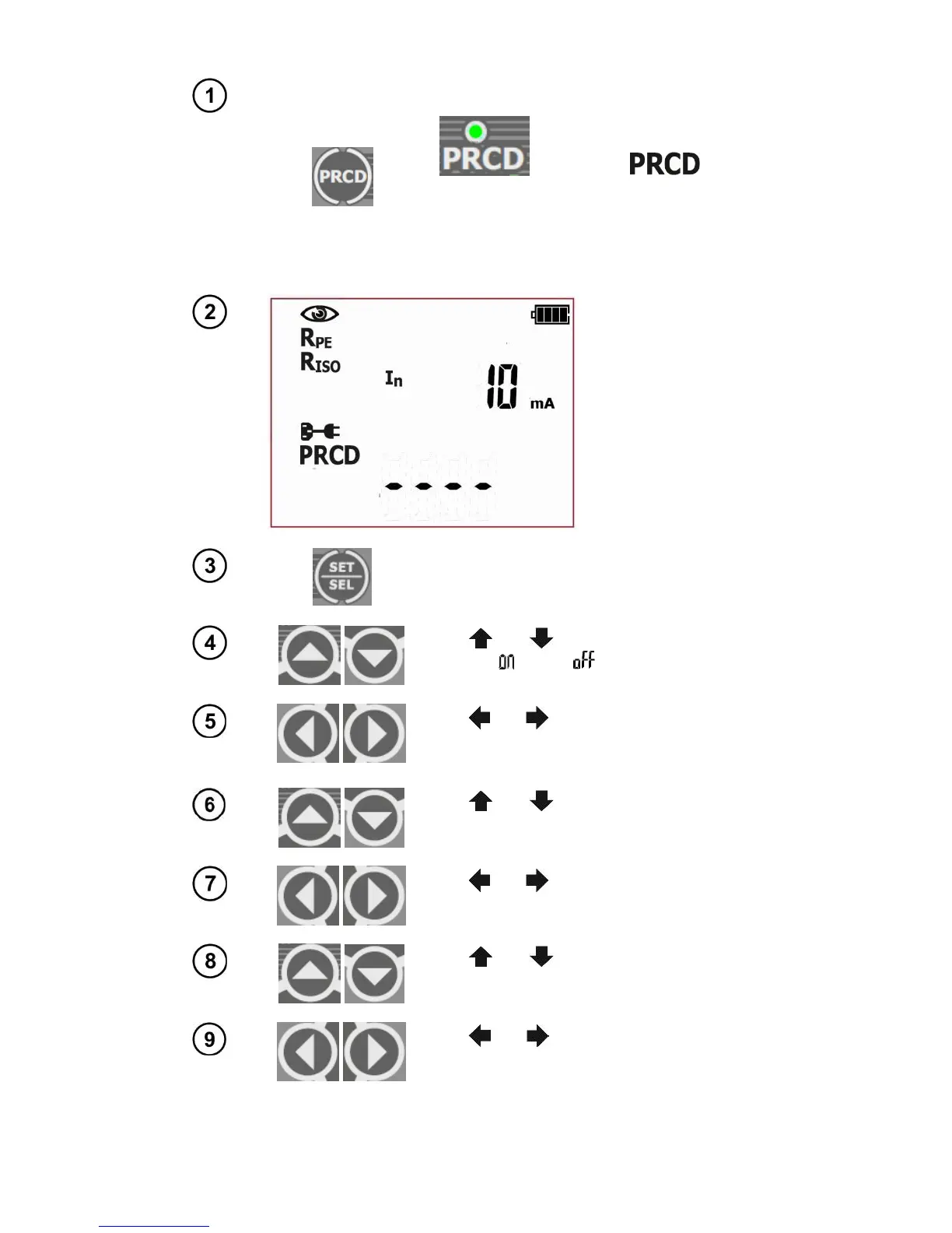 Press PRCD button to go to the testing