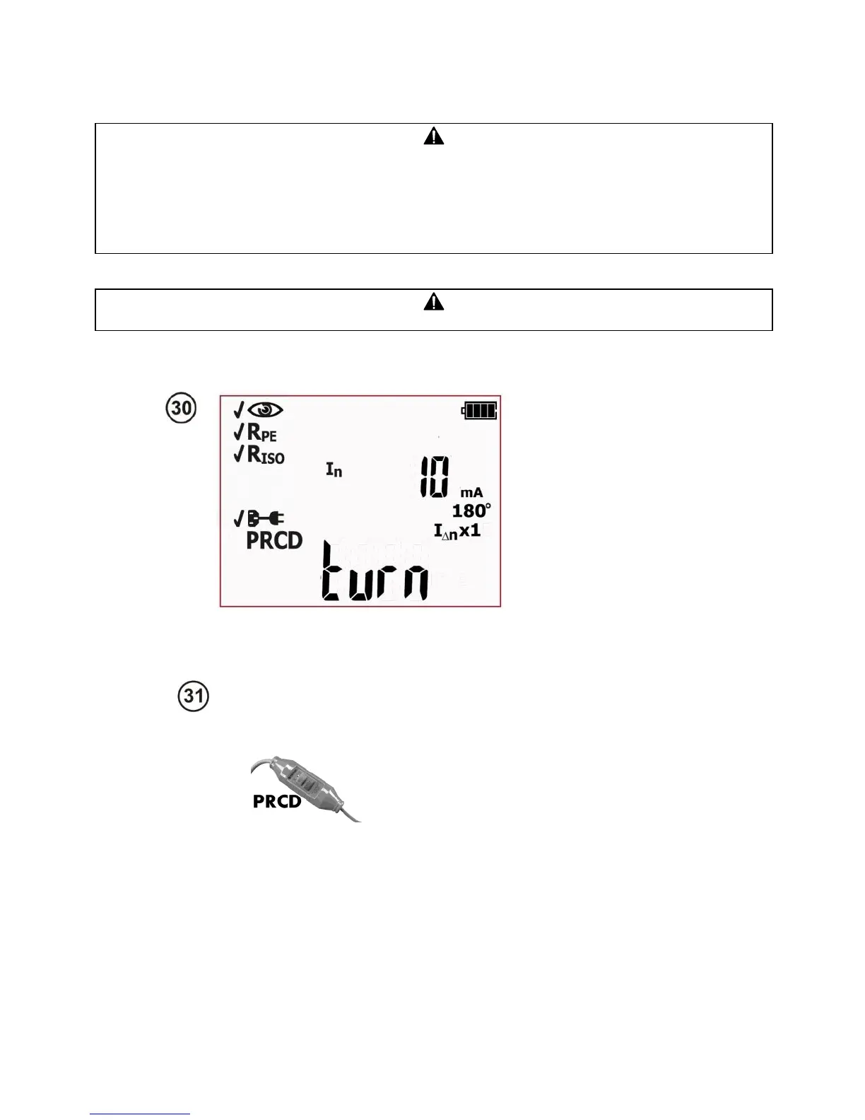 PE continuity test), a message saying ‘turn on Prcd’ (turn on PRCD) may turn up on screen. Turn