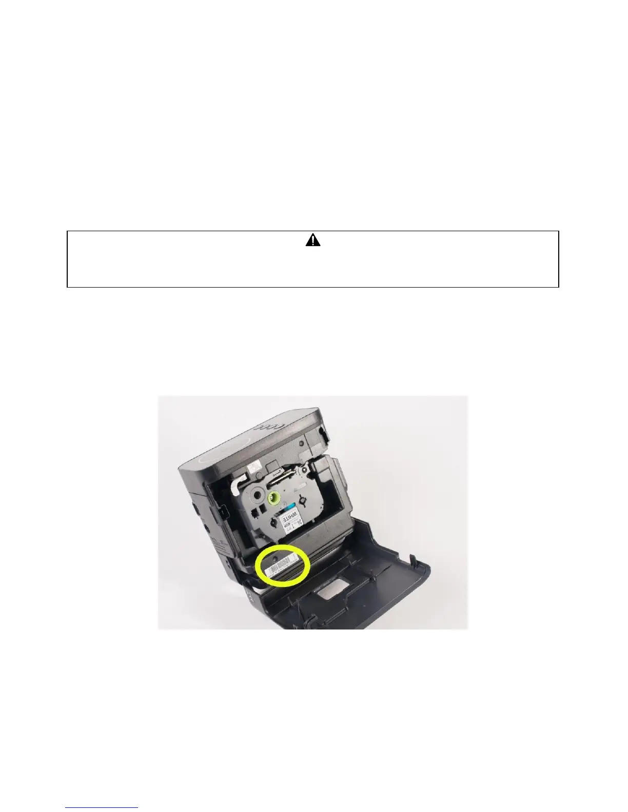 - on a sticker under the flap side of the printer (recommended location):