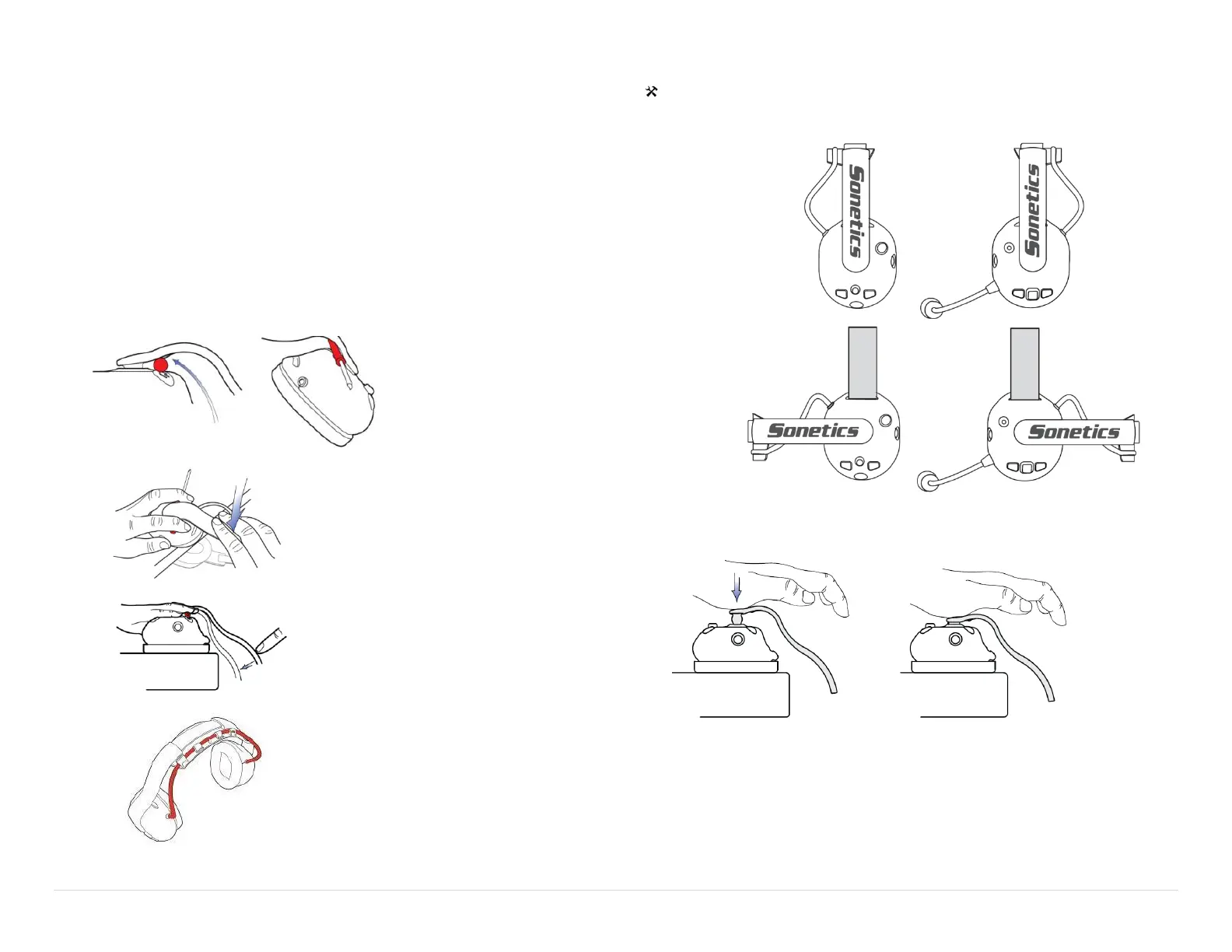 The Sonetics Electronic Headset may be set up for use in overhead, under-helmet,