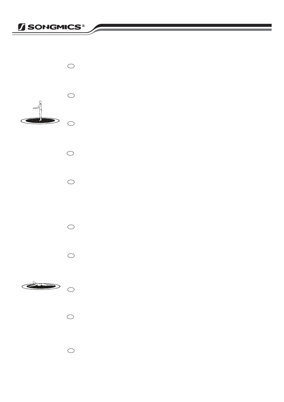 Ÿ Commencez au centre du tapis de saut, jambes écartées à la largeur de vos épaules, les bras le long du