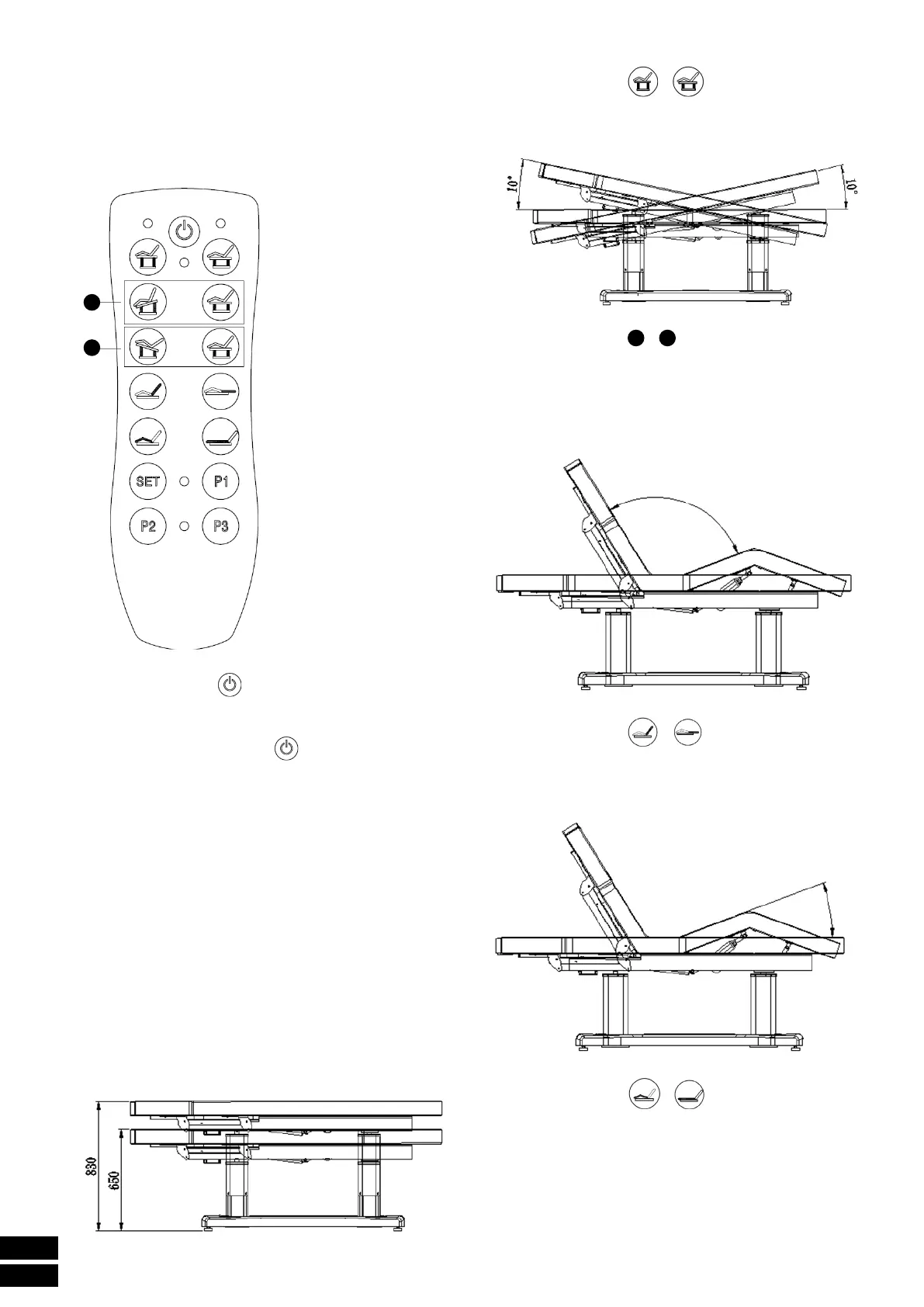 - Premere i pulsanti P1, P2, P3 per posizionare il lettino in