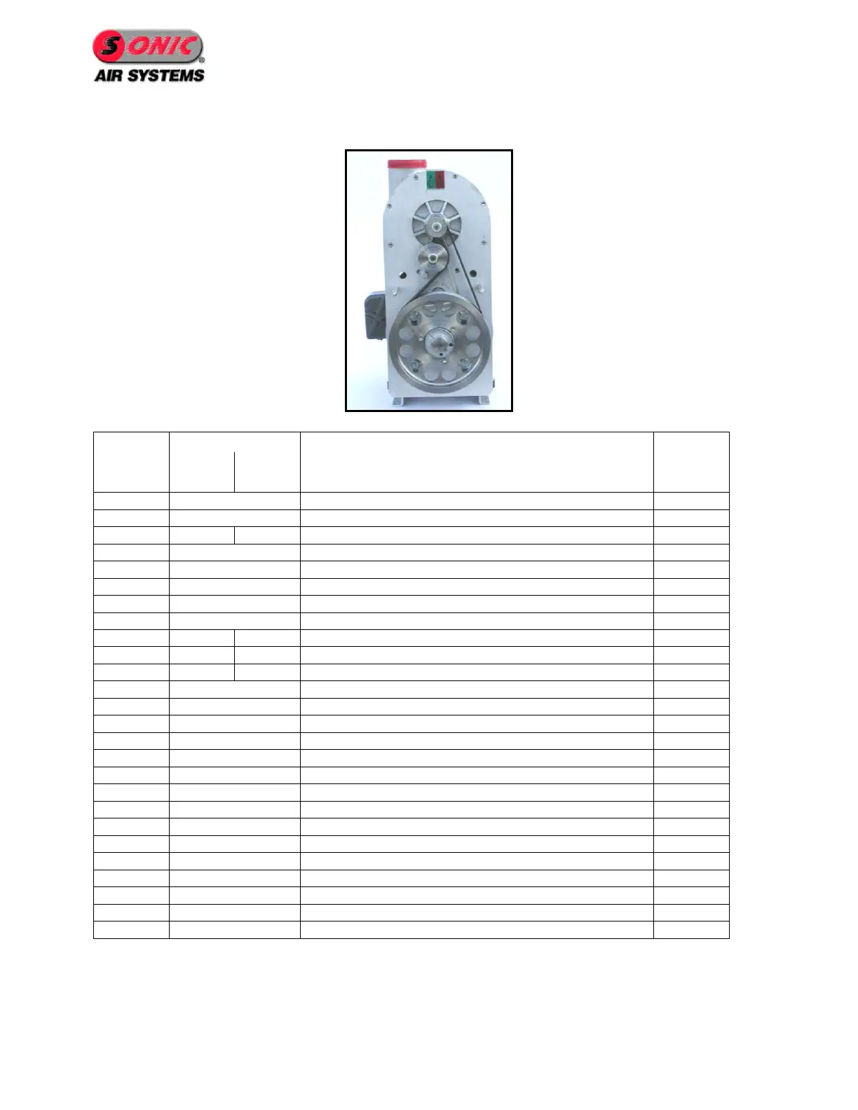 Sonic Air Systems Sonic 150 - Parts Lists; Sonic 150 Blower Unit Parts