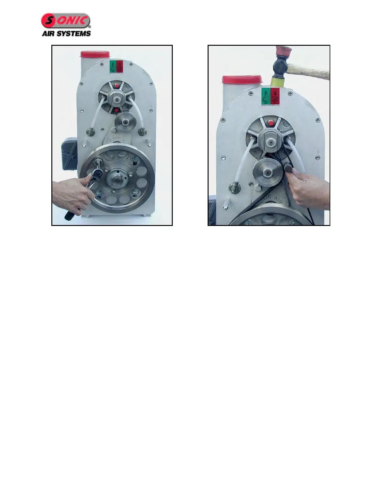 Sonic Air Systems Sonic 150 - Figure 50 - Loosen Bracket Hardware; Figure 51 - Adjust Belt Gap to 3;4