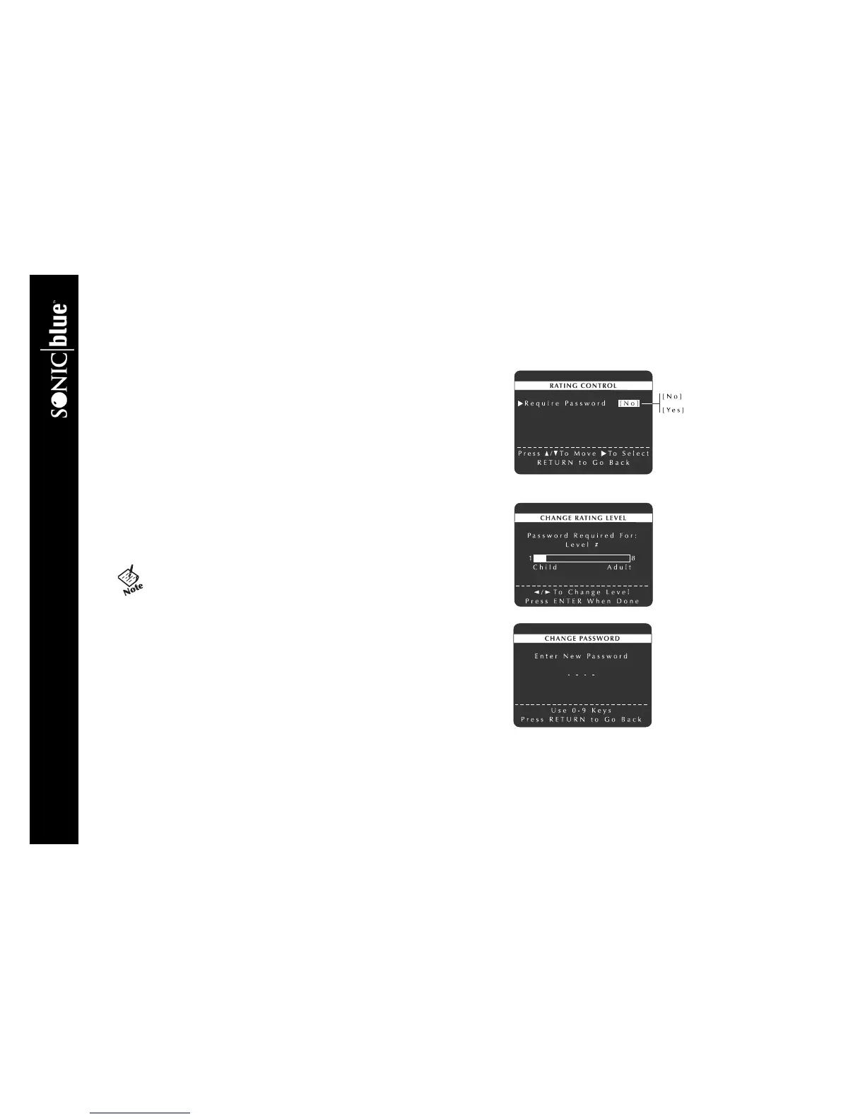 Y/B and " to select Rating Control. If the Enter Password screen