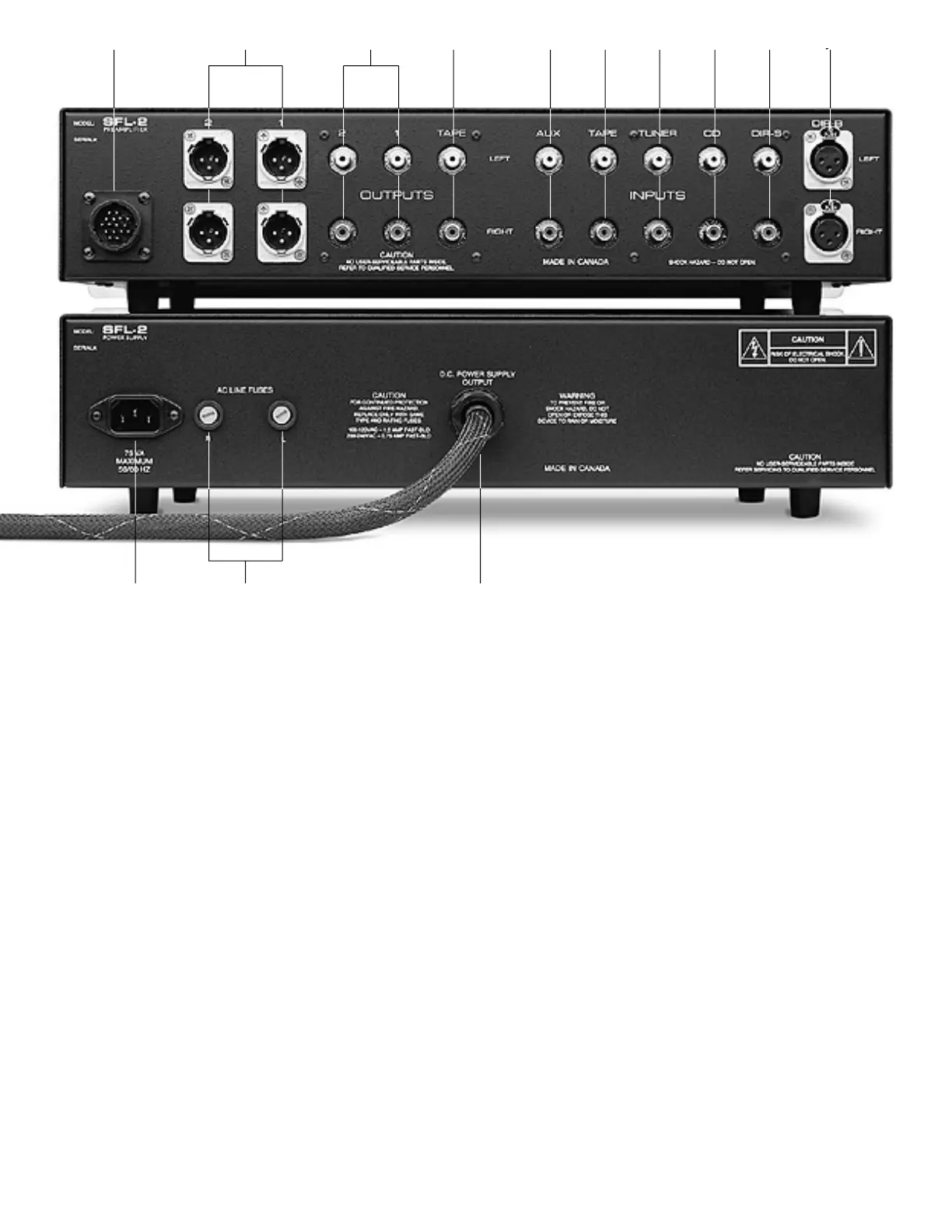 Power Supply to plug into the Power Input Socket (A) on the SFL-2