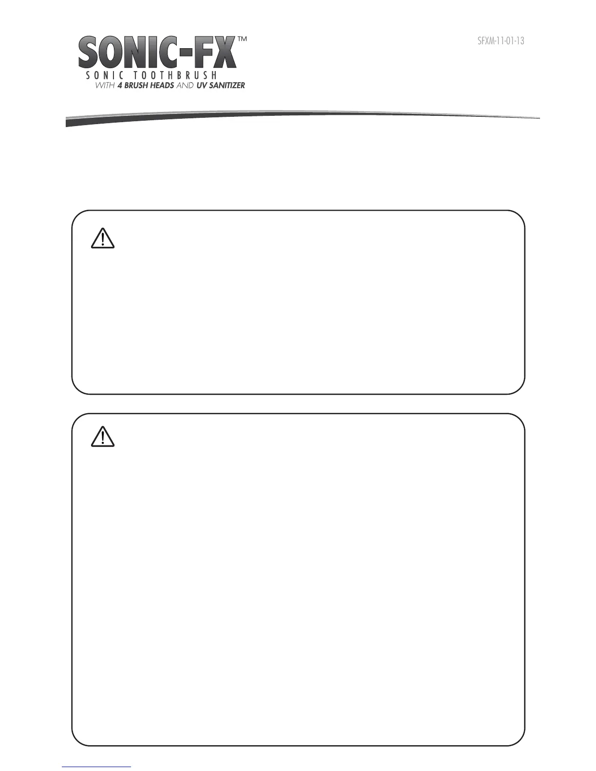 Thank you for purchasing the Sonic-FX Sonic Toothbrush. The Sonic-FX rechargeable electric toothbrush