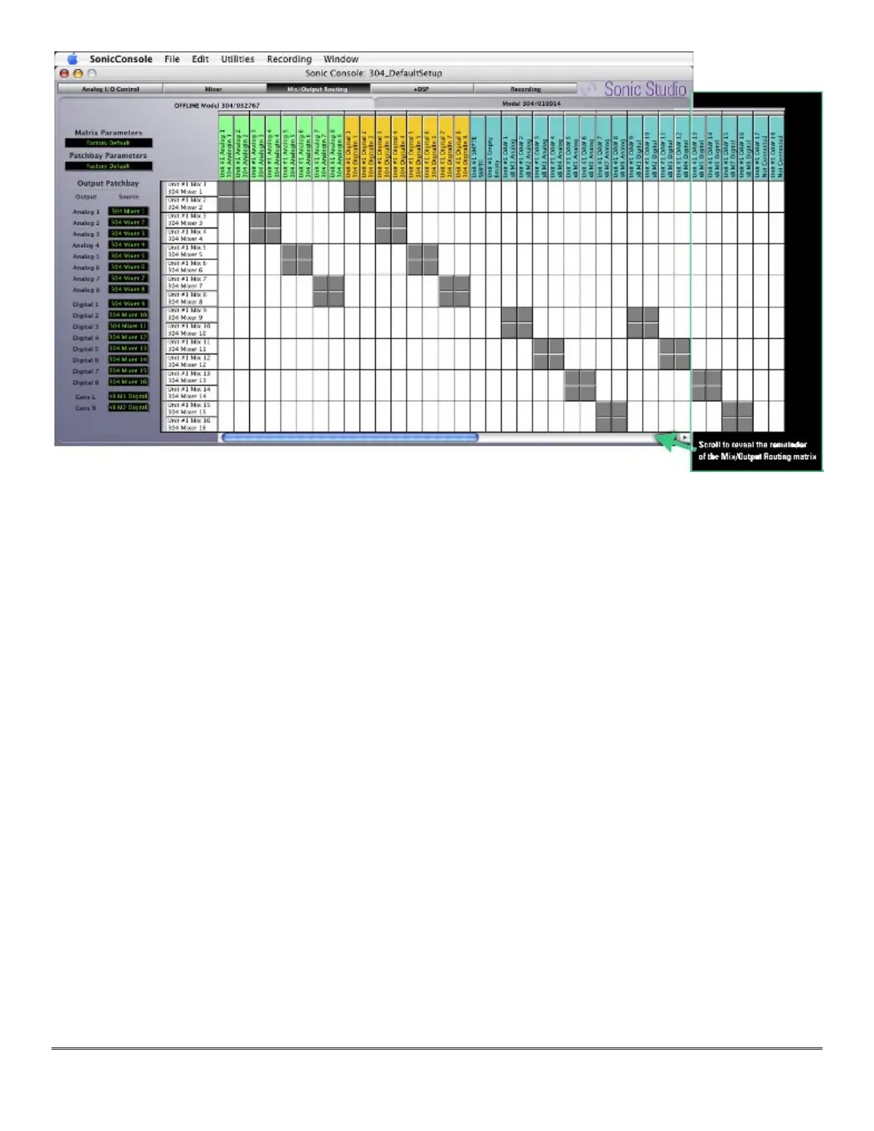 sources available from which a signal can be patched, while the rows, with their white headers,