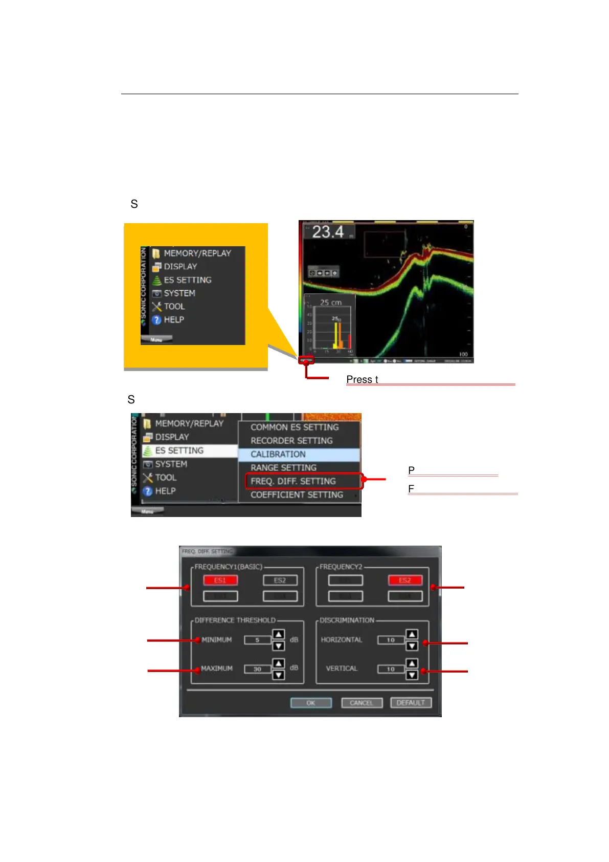 different reflection intensities. To set FREQ DIFF, follow the procedure shown