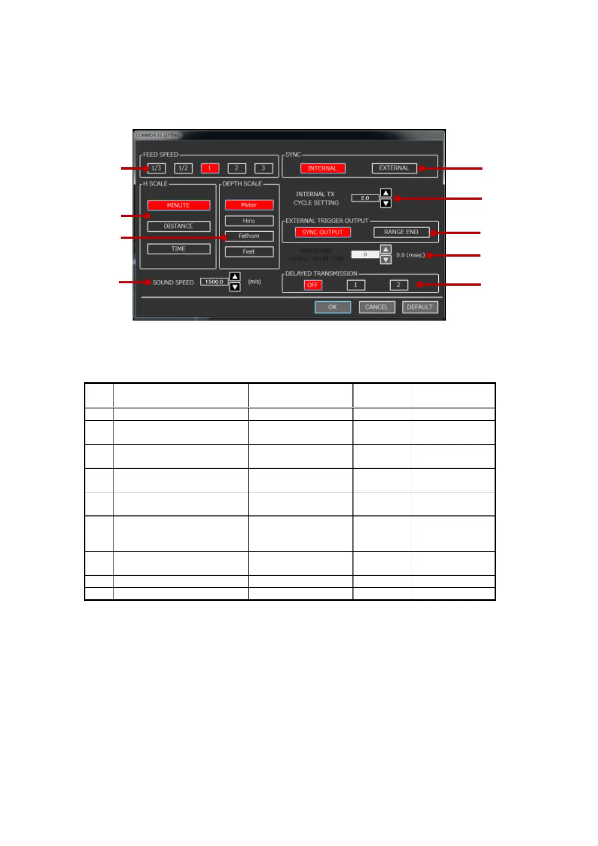 Table 3-4 Descriptions of COMMON ES SETTING Items