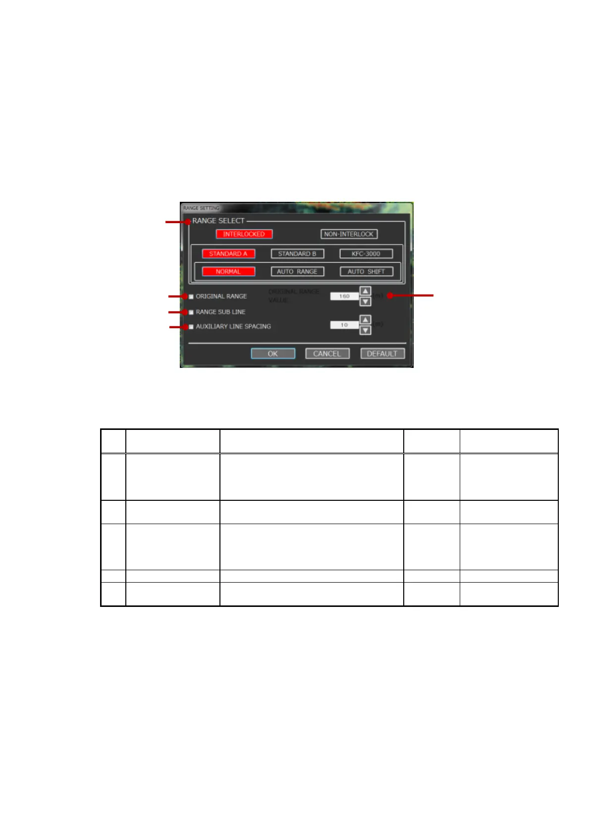 Table 3-5 Descriptions of the RANGE SETTING items