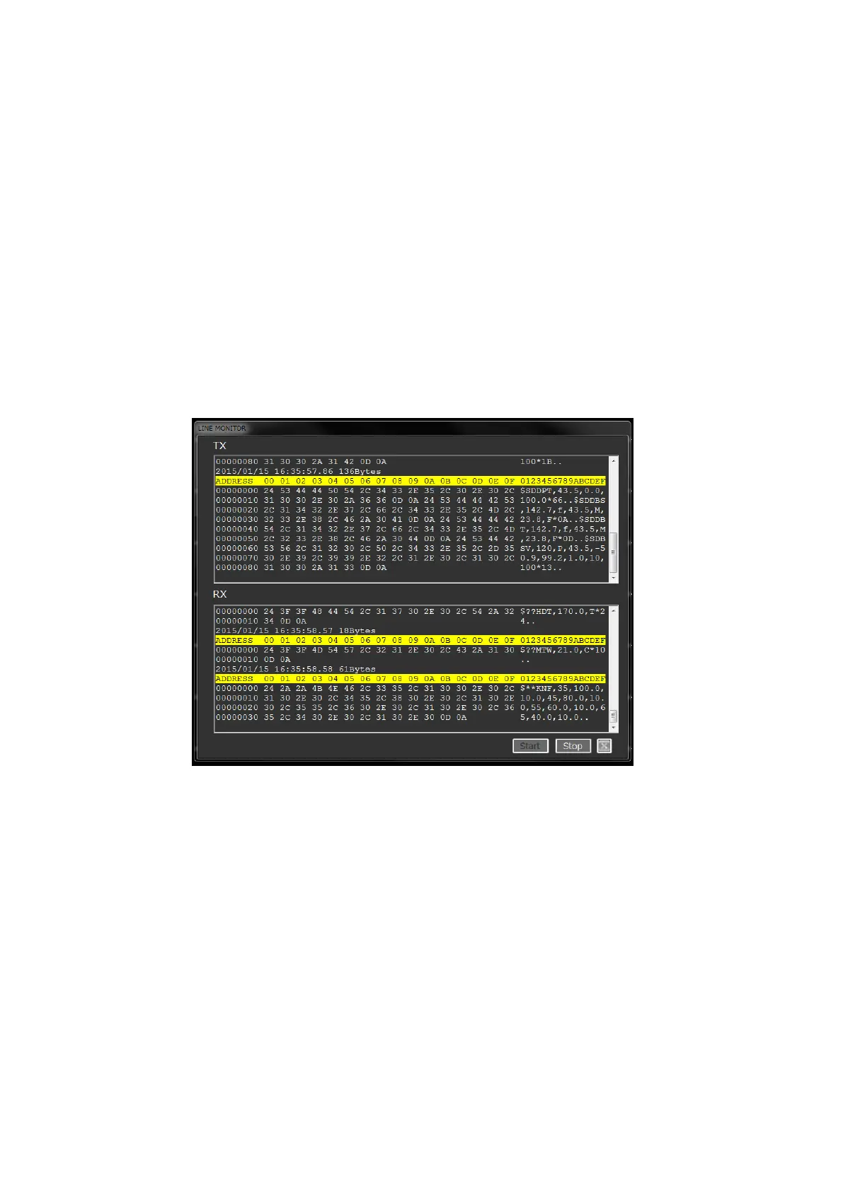Using LINE MONITOR, the NMEA input and output data can be displayed