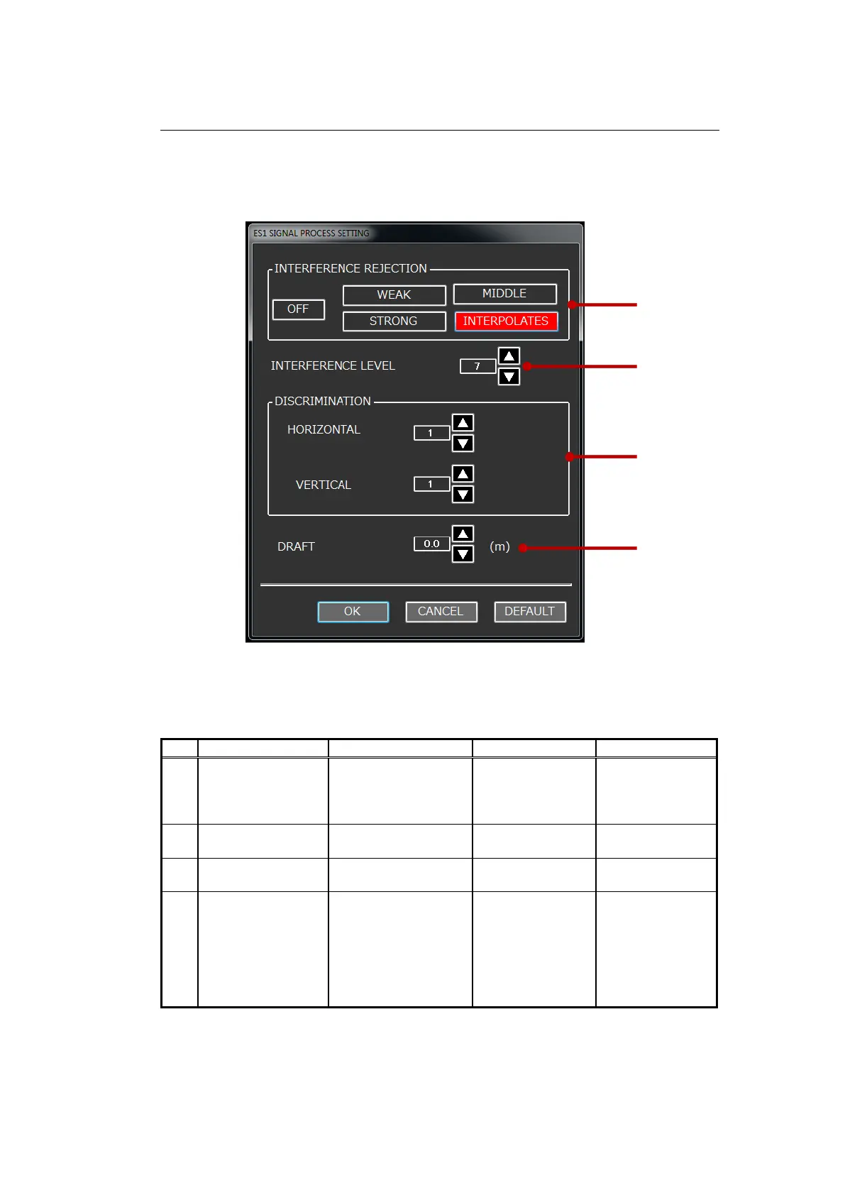 Table 3-17 Descriptions of SIGNAL PROCESS setting items