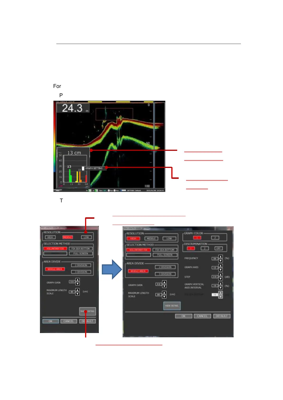(For the displaying procedure of the FISH LENGTH GRAPH, refer to Section 2-7).
