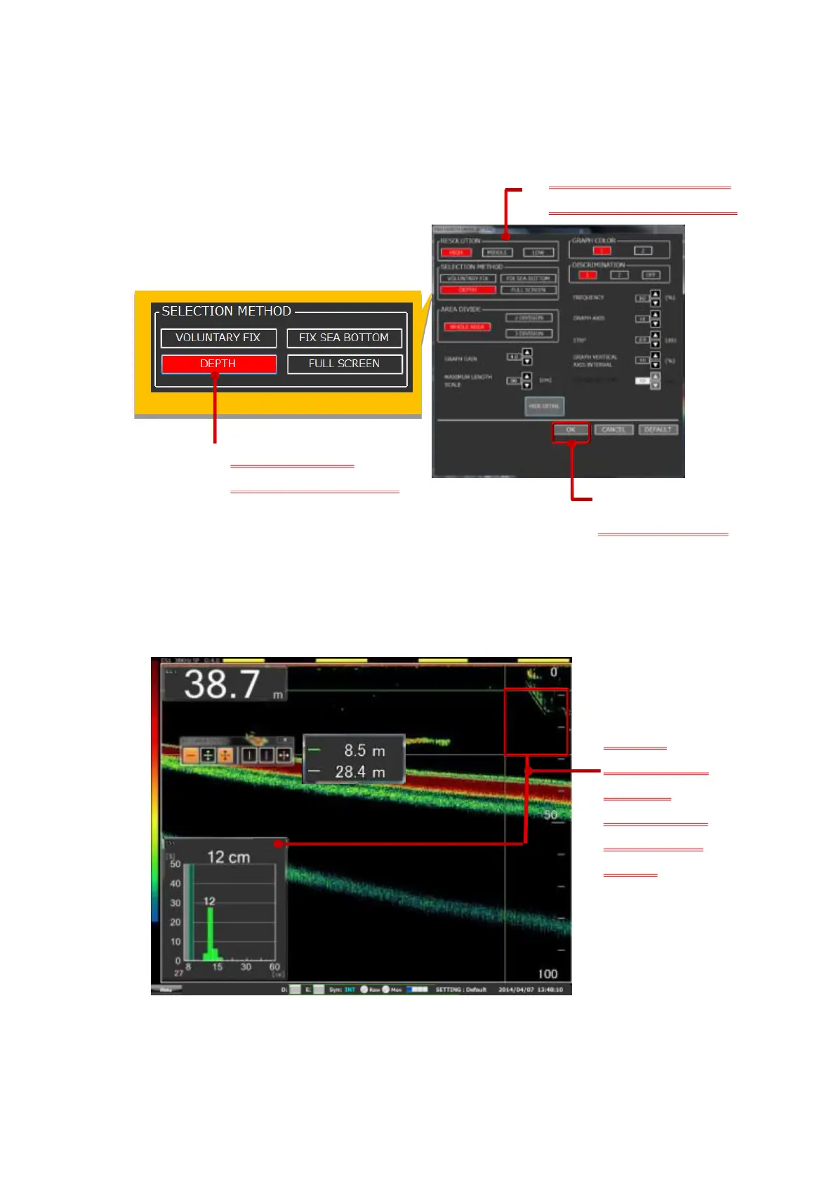 Fig. 2-32 The procedure for displaying the FISH LENGTH GRAPH of DEPTH