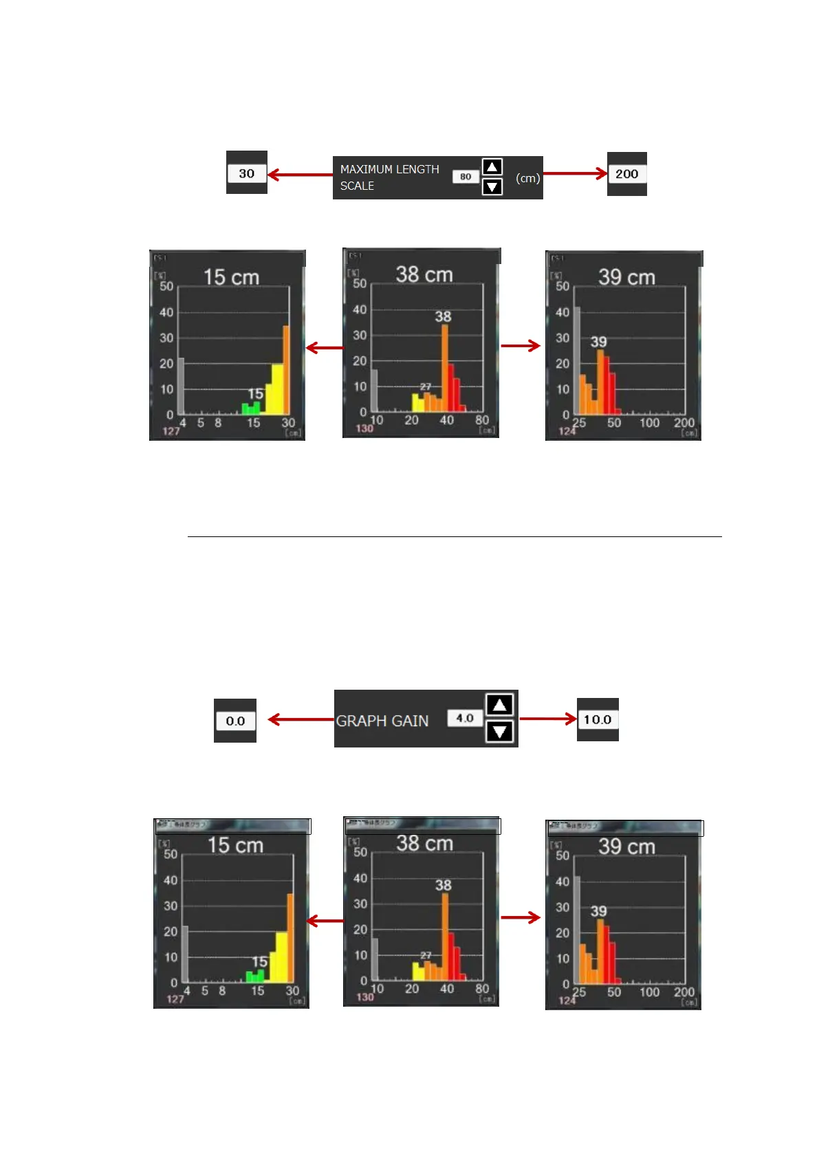 Fig. 2-41 FISH LENGTH GRAPH: Changing the graph gain (0-10.0/in steps of 0.1)