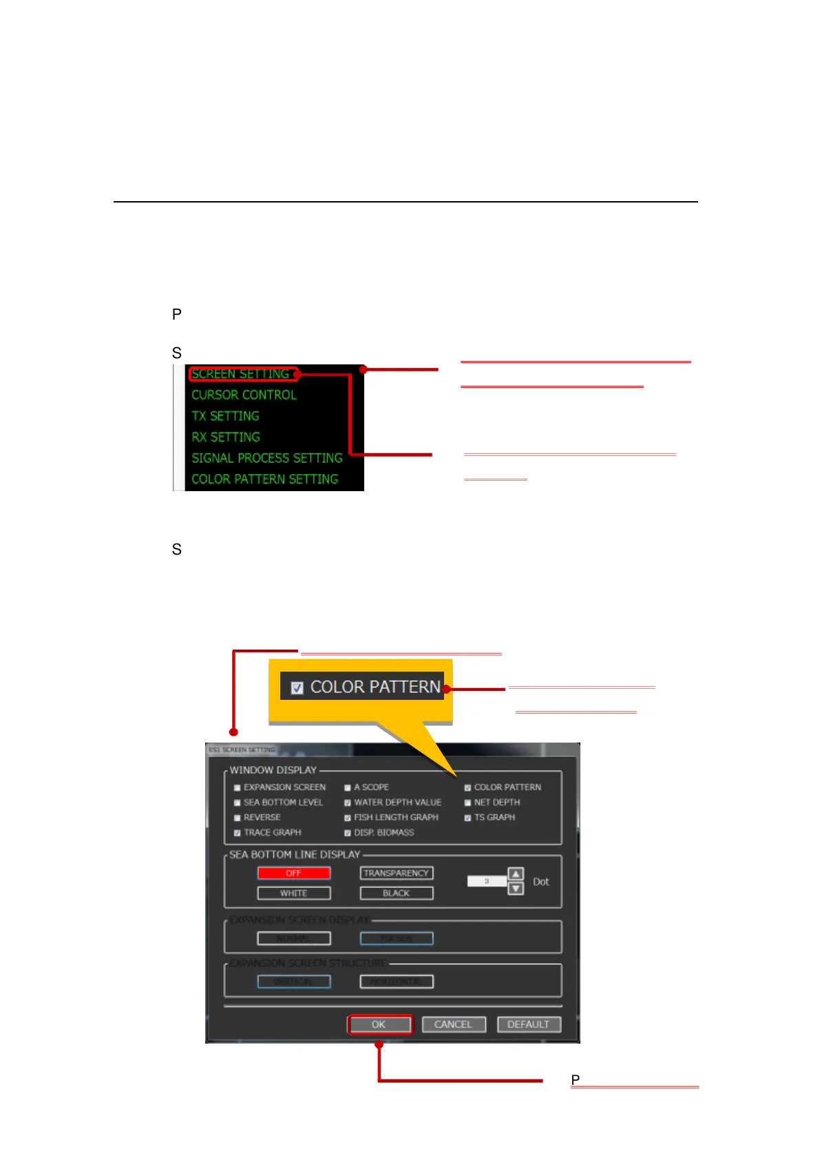 To display the color pattern, follow the procedure in Fig. 2-57 below.