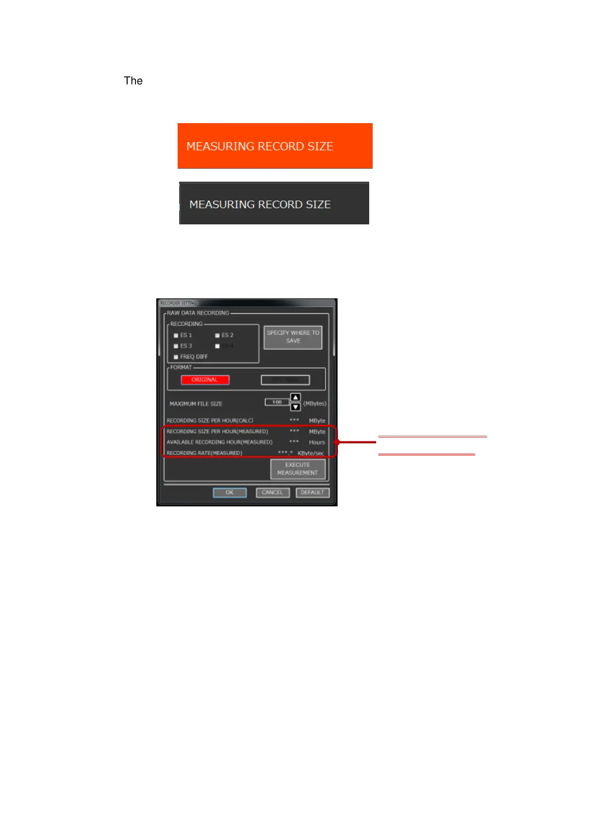 displayed to indicate MEASURING RECORD SIZE.”