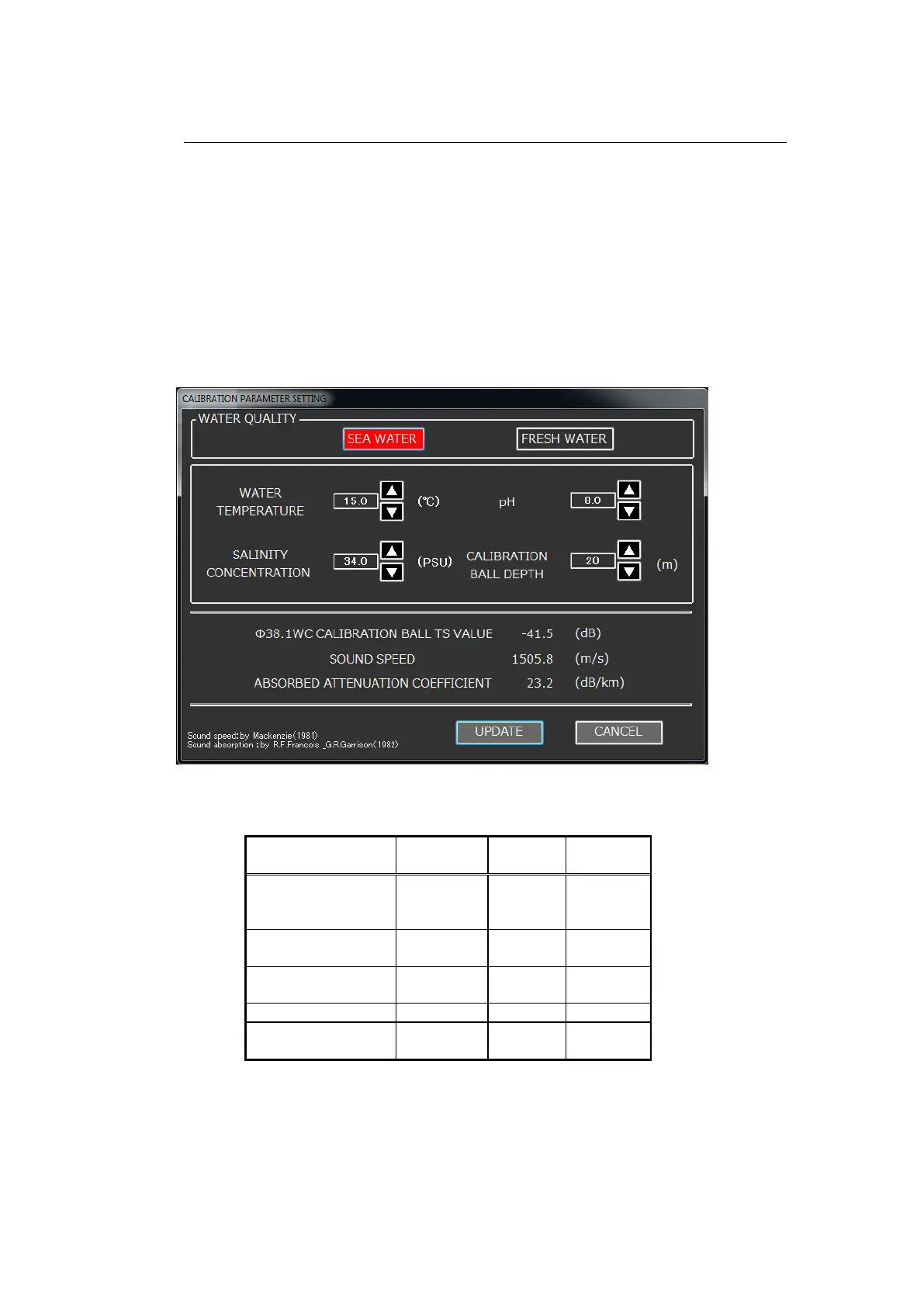 Table 2-5 CALIBRATION PARAMETER SETTING screen items
