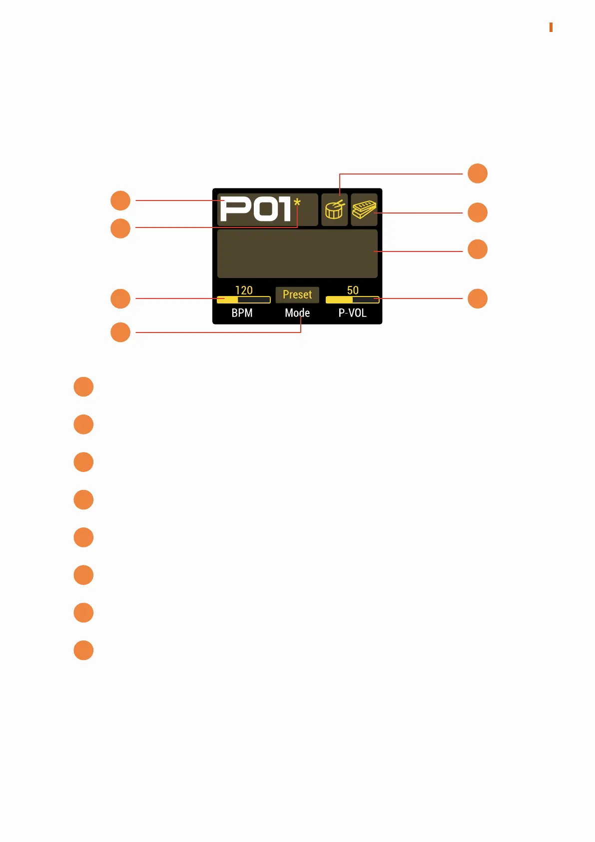 BPM: Current preset BPM, can be adjusted from 40 to 250