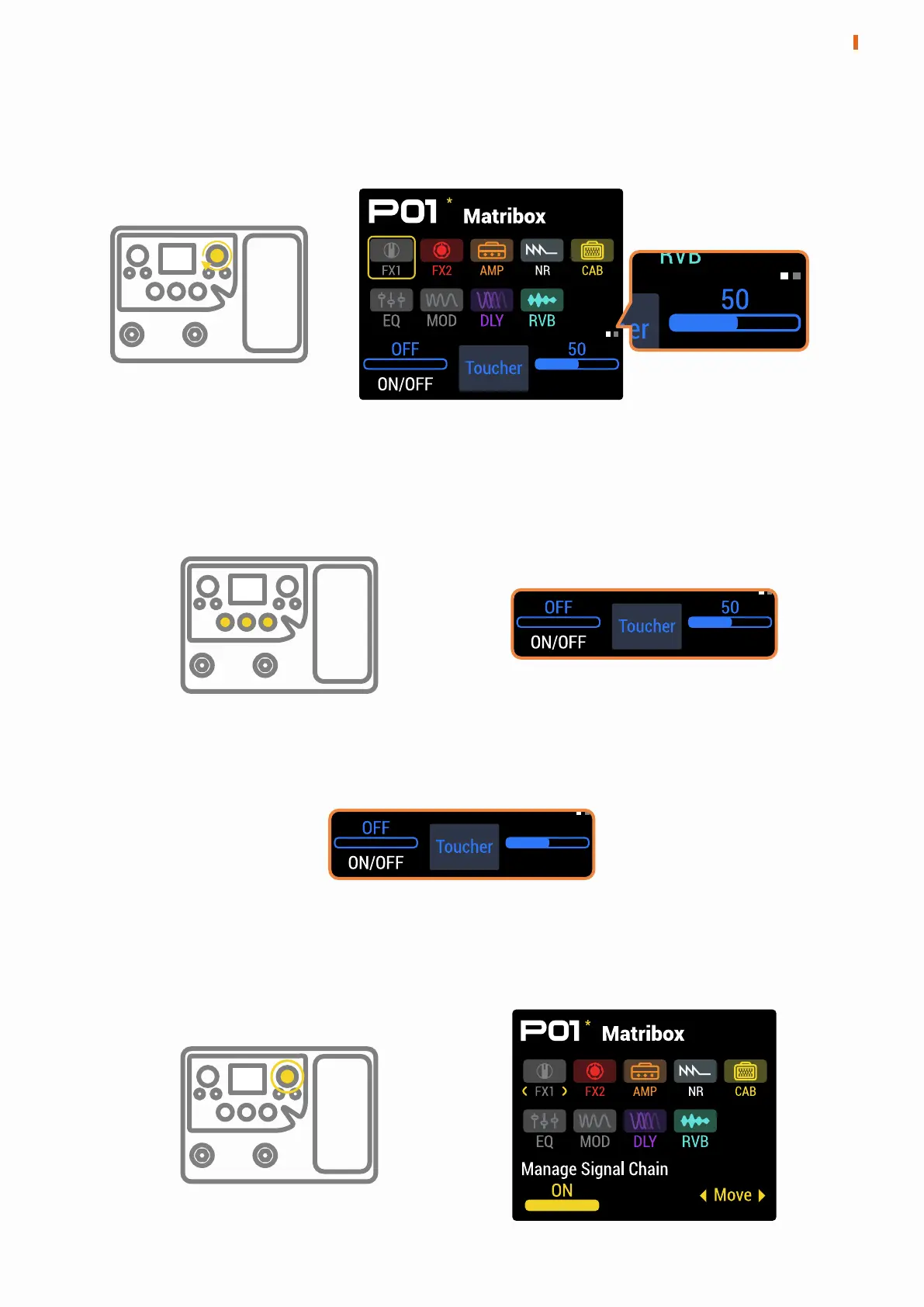 In this menu, press and hold the PARA knob to adjust the effect chain.