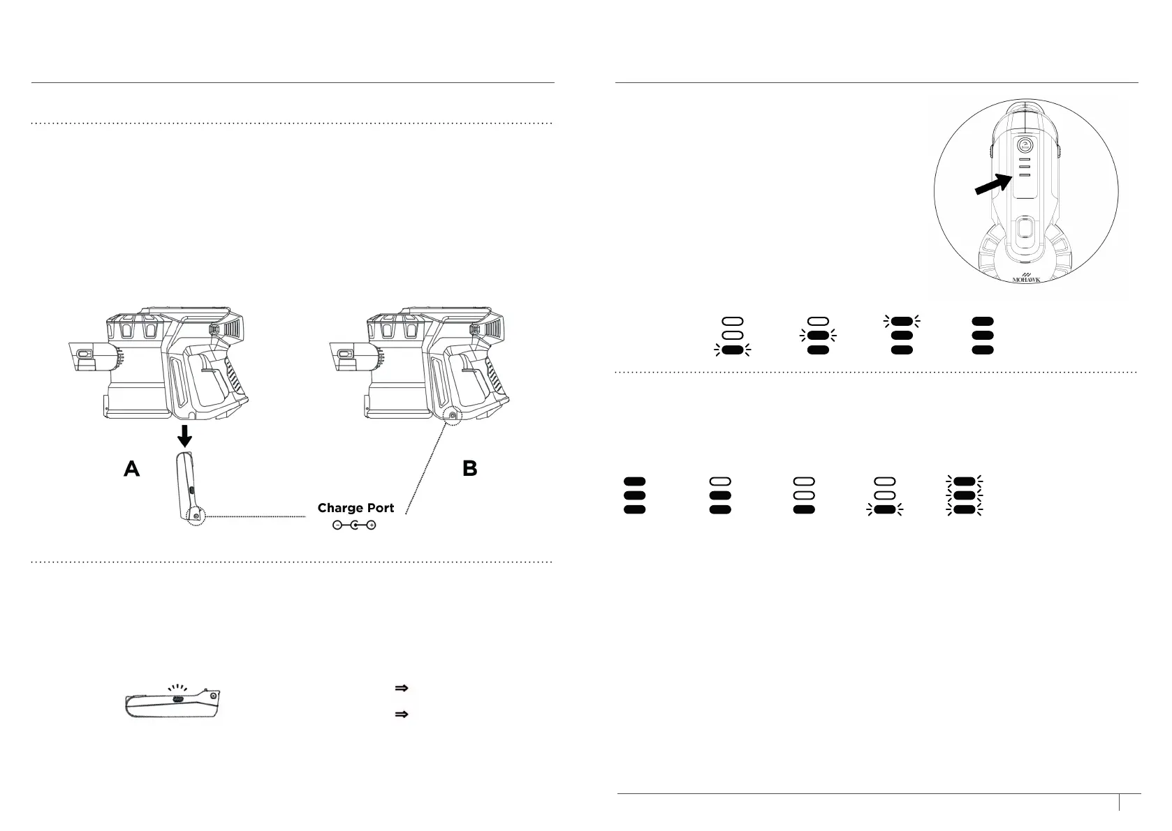 order. When less than 5% of the charge remains, ALL 3 indicators lights will blink.