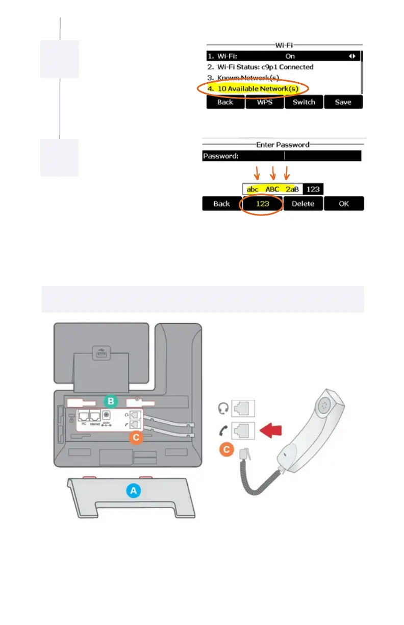 Attach the phone stand to the body. Align the stand A with the slots B, and