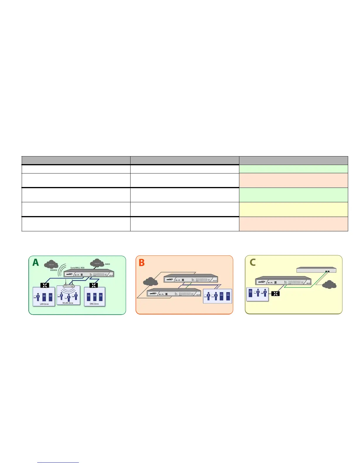 No gateway appliance Single SonicWALL NSA as a primary gateway.