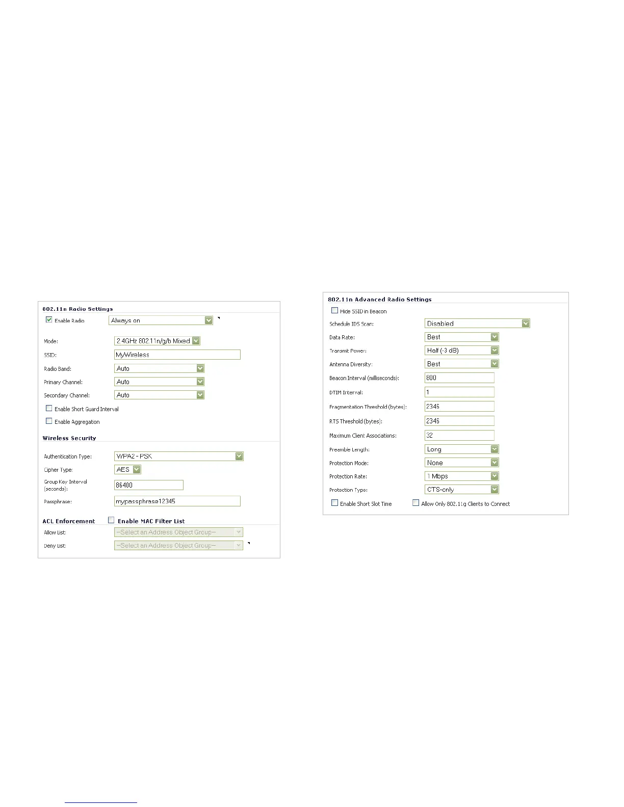 For most 802.11n advanced options, the default settings give