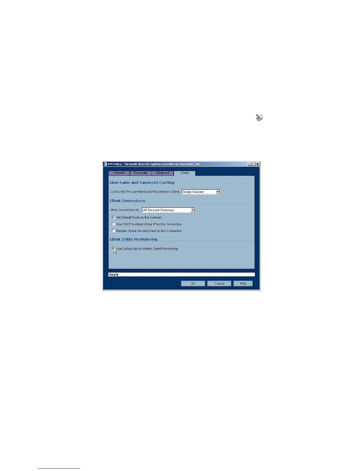 SonicWALL security appliance. If you do not configure the WLAN GroupVPN policy with this setting,