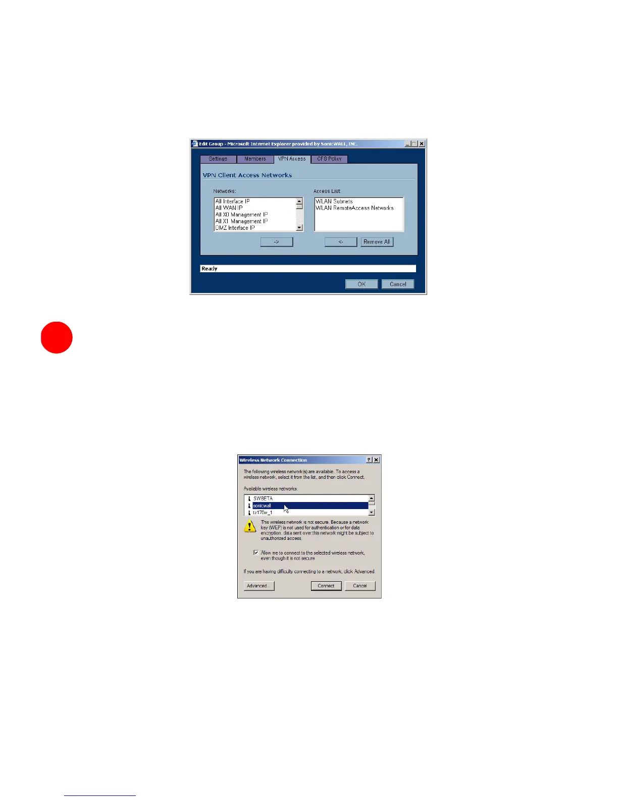 •SonicWALL GVC or SonicWALL GSC installed and configured for a secure wireless connection