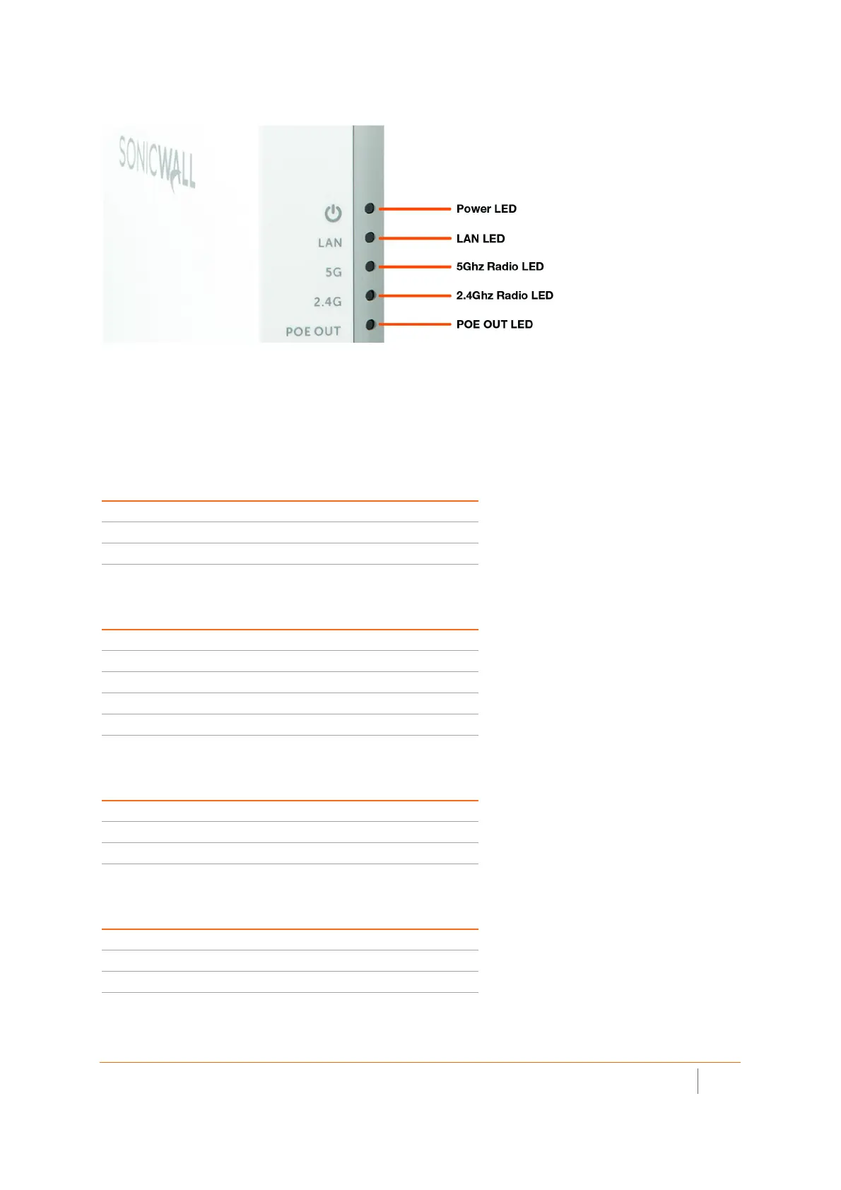 For information about the LEDs, see the SonicWave 224w LED Activity section.