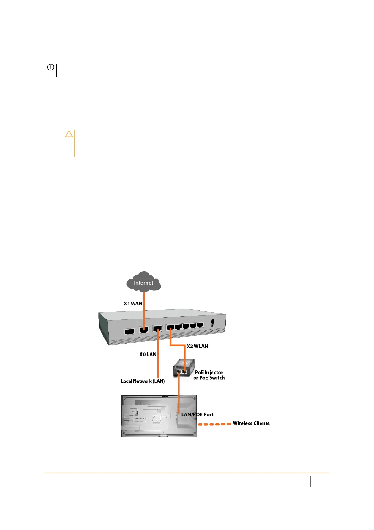 1 Using an Ethernet cable, connect the Data in port on the PoE Injector to an existing WLAN zone interface on the firewall