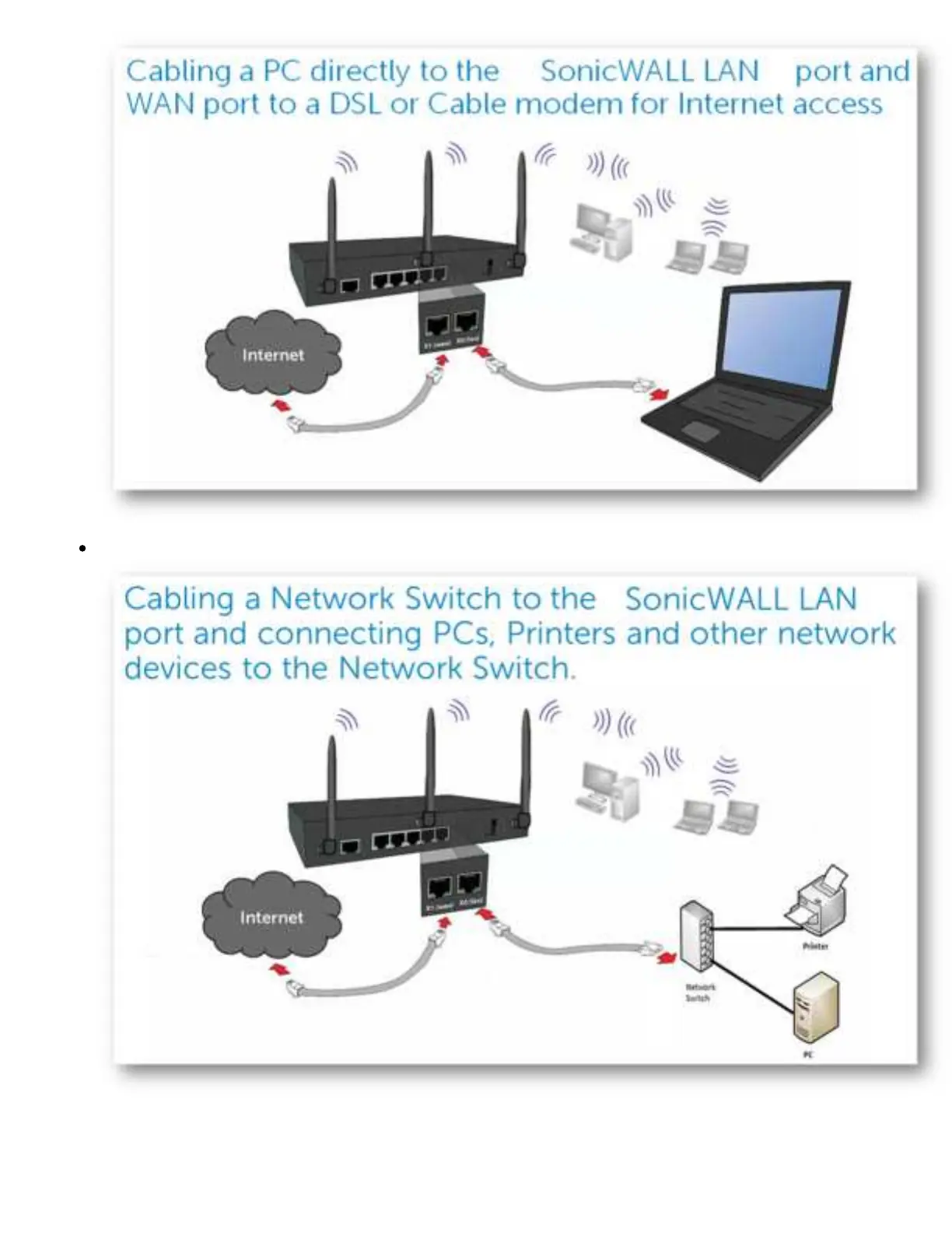 SonicWALL TZ400 - Network Cabling Topologies; Direct PC Connection to LAN; Network Switch Connection