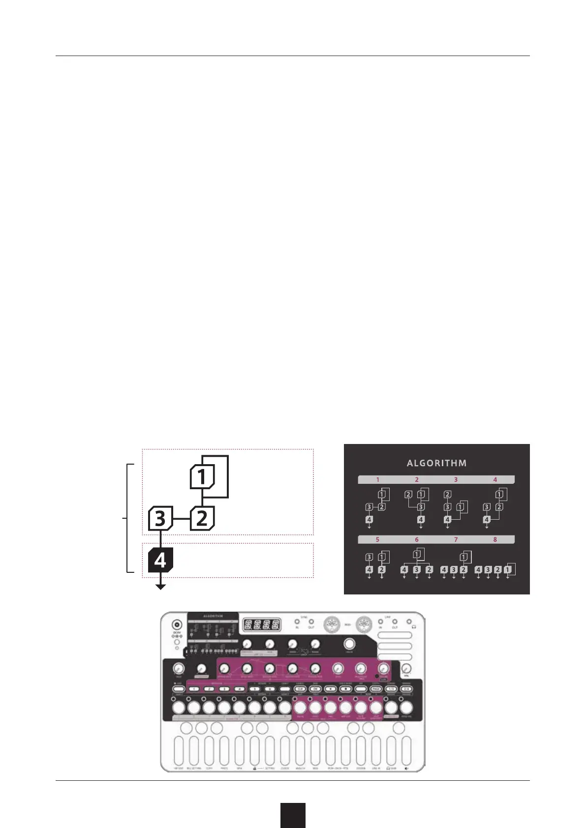 MEGA SYNTHESIS uses a 4-operator-8-algorithm FM synth engine,