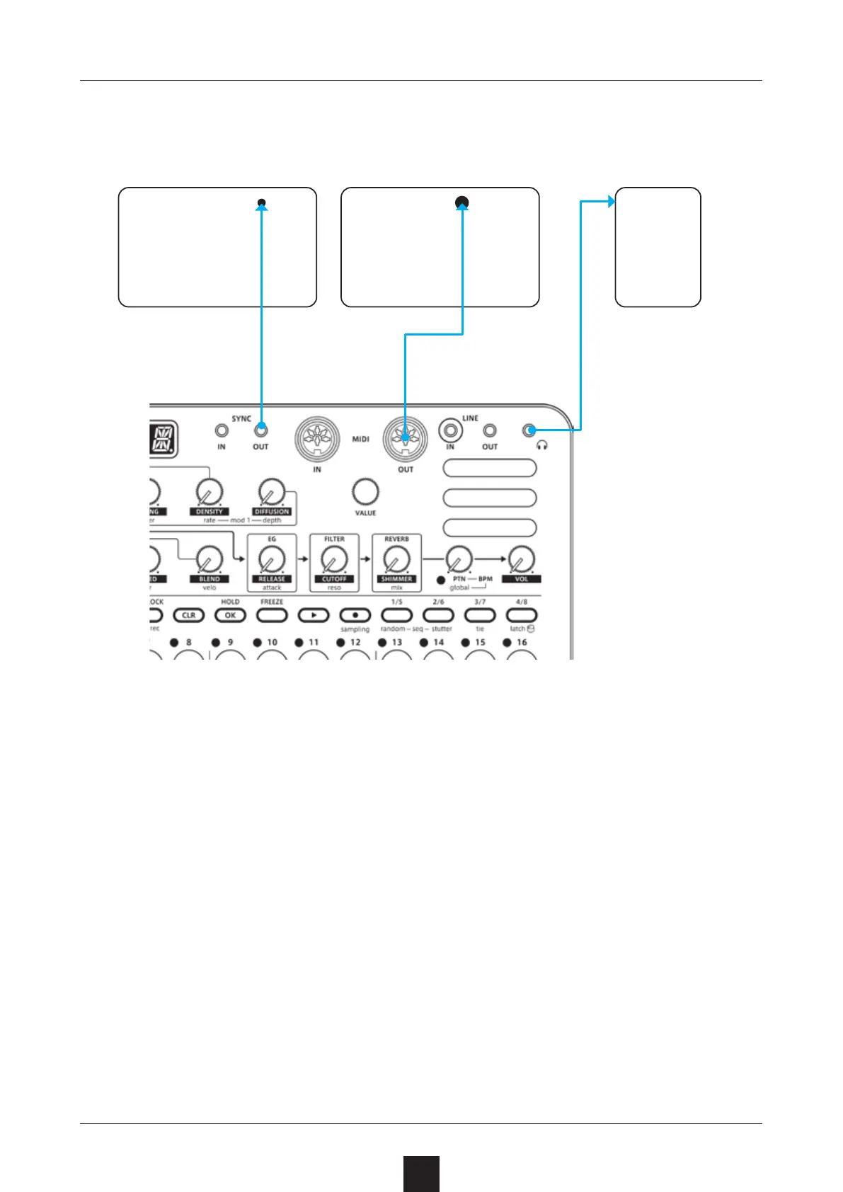 Sonicware LIVEN Texture Lab - Synchronization Connection Examples; LIVEN as Clock Master Configuration