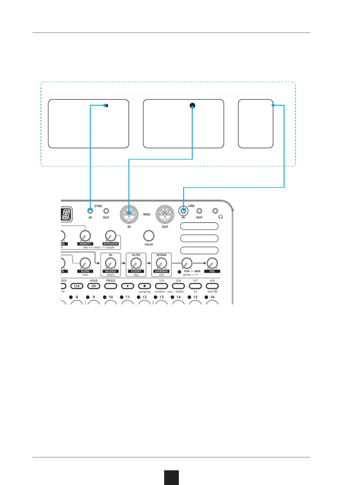 Sonicware LIVEN Texture Lab - Synchronization Connection Examples; External Device as Clock Master Configuration