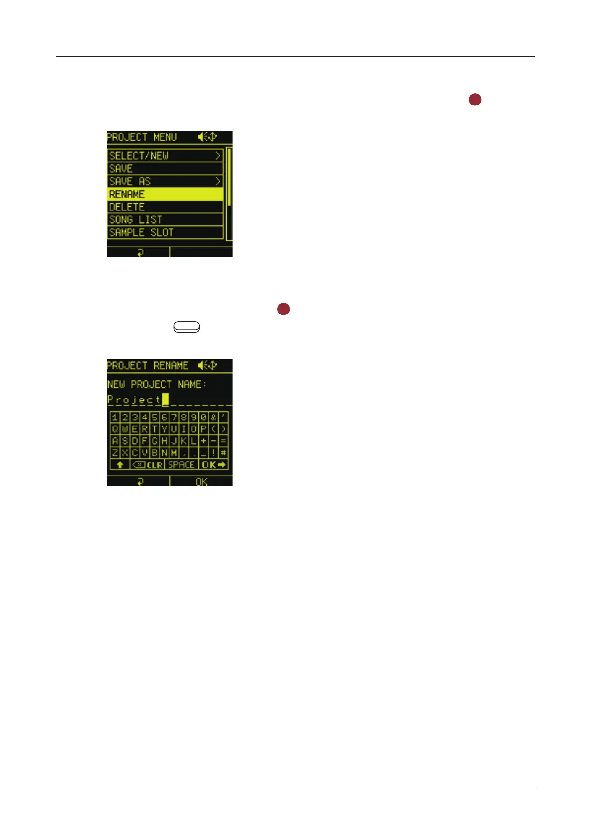 In the PROJECT MENU, select RENAME and press the