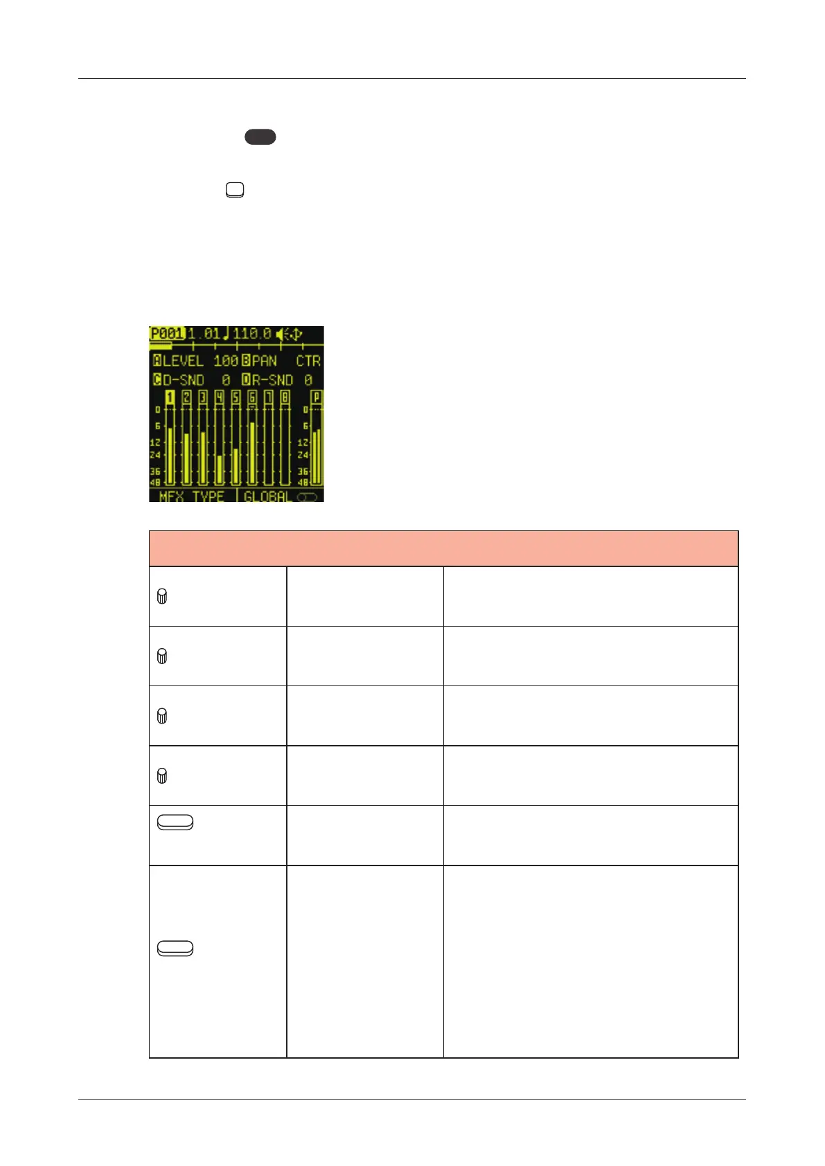 D knob REVERB SEND