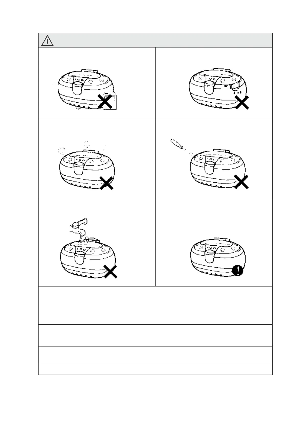 Benutzen Sie den Ultraschallreiniger nicht