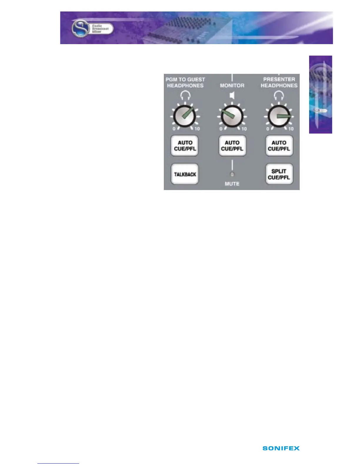 The presenter headphones have the additional facility of SPLIT CUE/PFL. When this button is