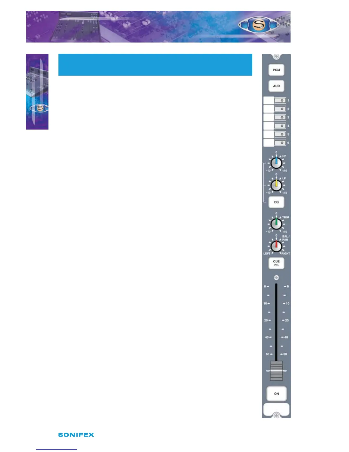 The 100mm VCA fader provides unity gain when fully open. The channel
