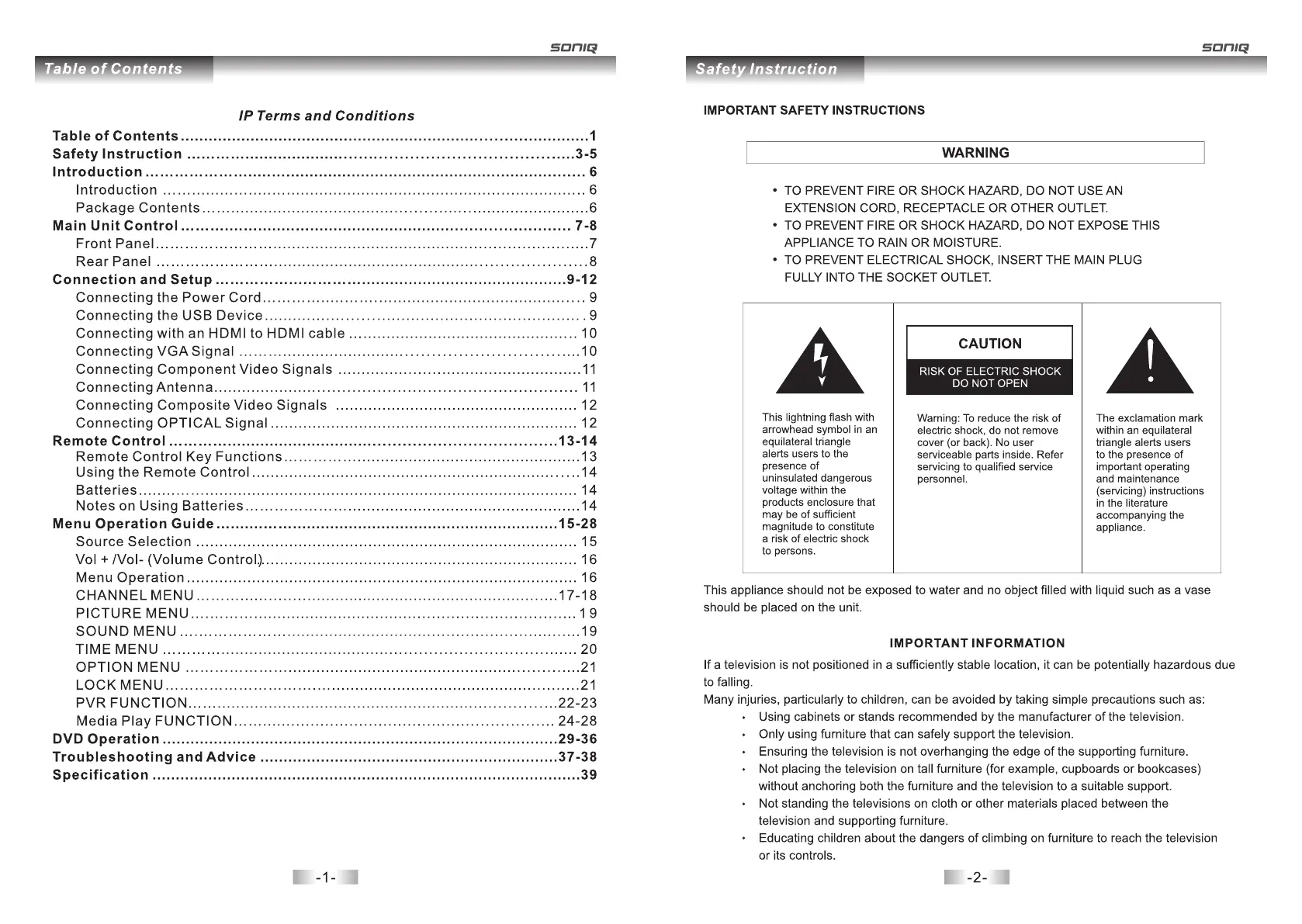 SONIQ E32W13D-AU - IP Terms and Conditions; Important Safety Instructions