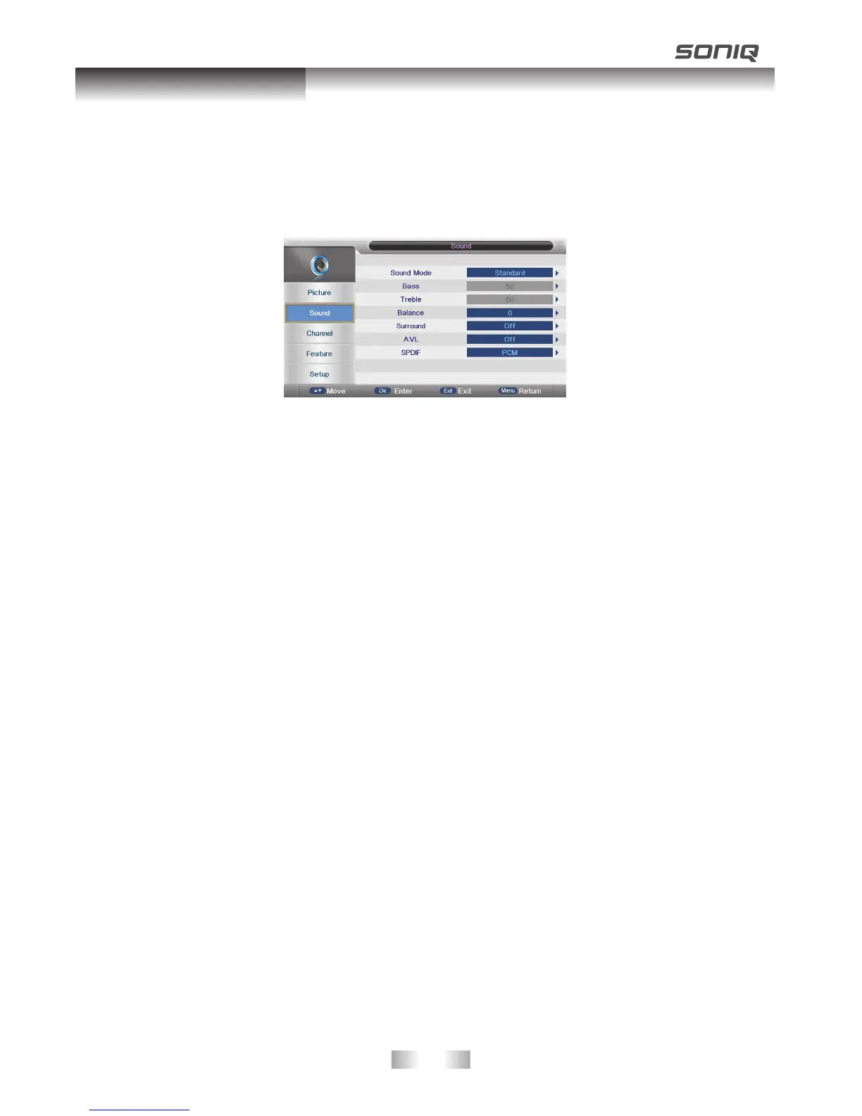 1.Press UP/DOWN button to select the option that you want to adjust in the Sound menu.