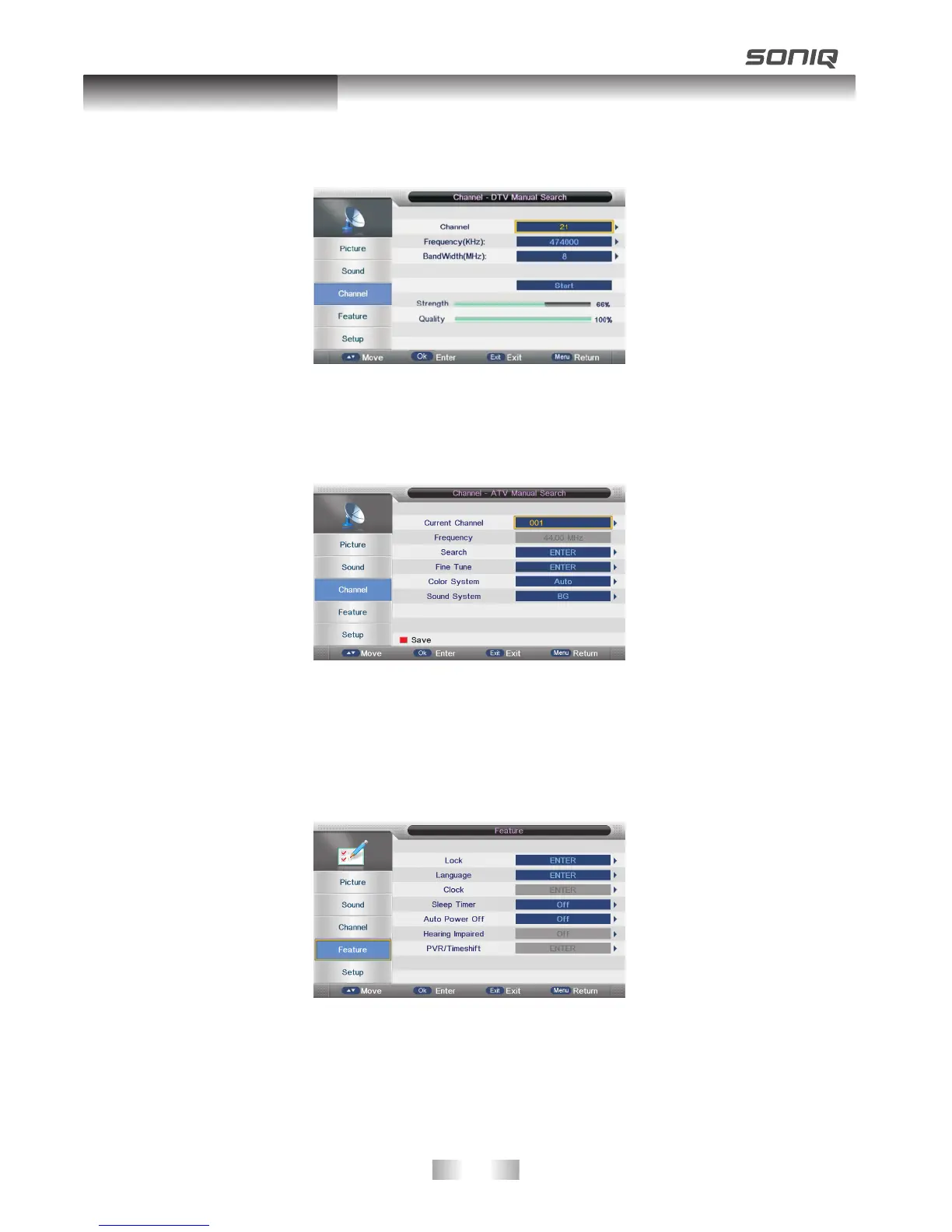 button to select these parameters. Select ”Search” item to enter analog channel tune,