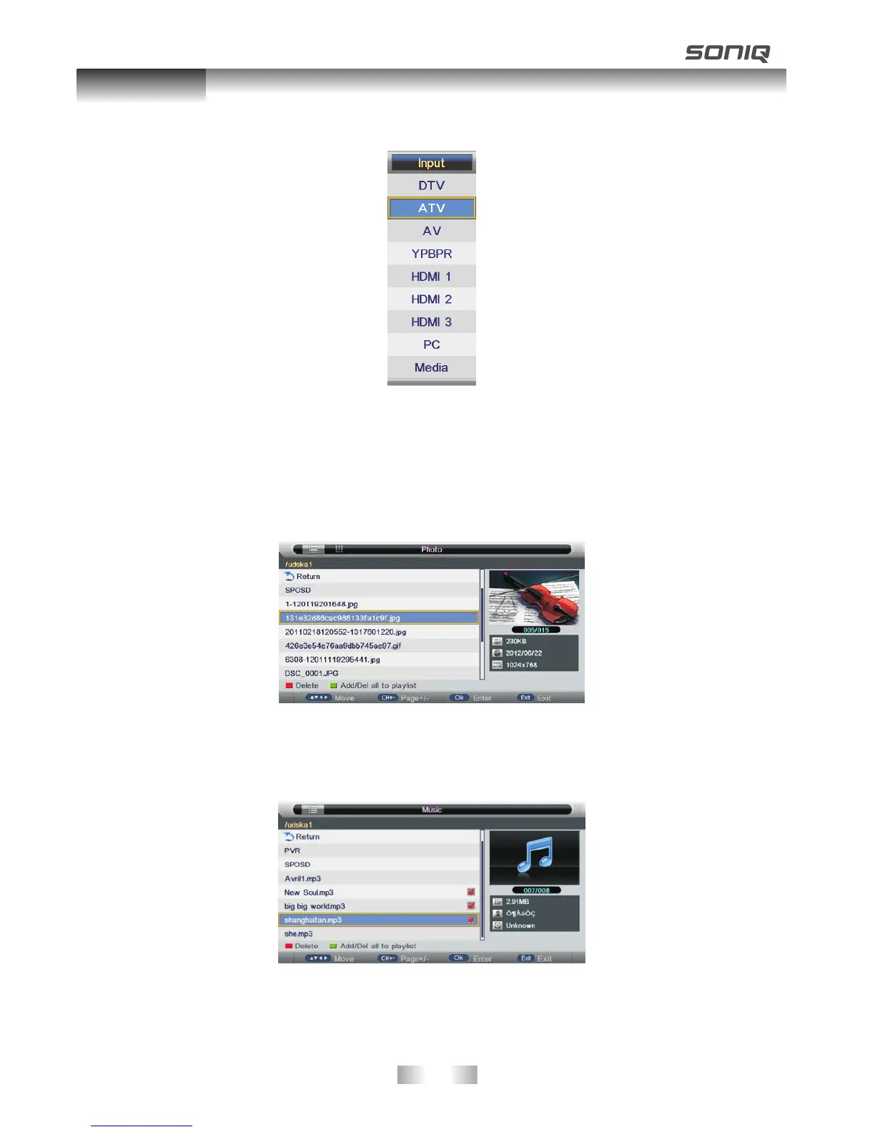 Press LEFT/RIGHT button to select Music in the main menu, then press OK button enter