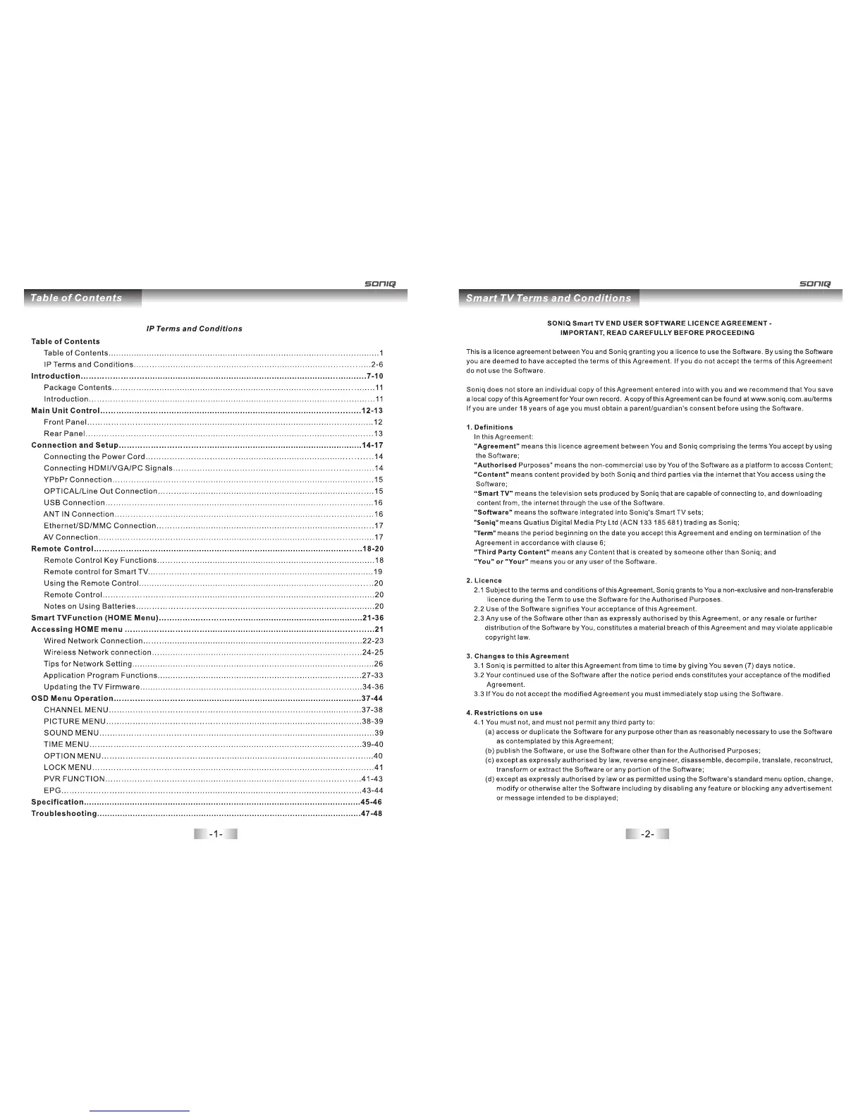 SONIQ E48S12A-Au - Smart TV Terms and Conditions; 1. Definitions; 2. Licence