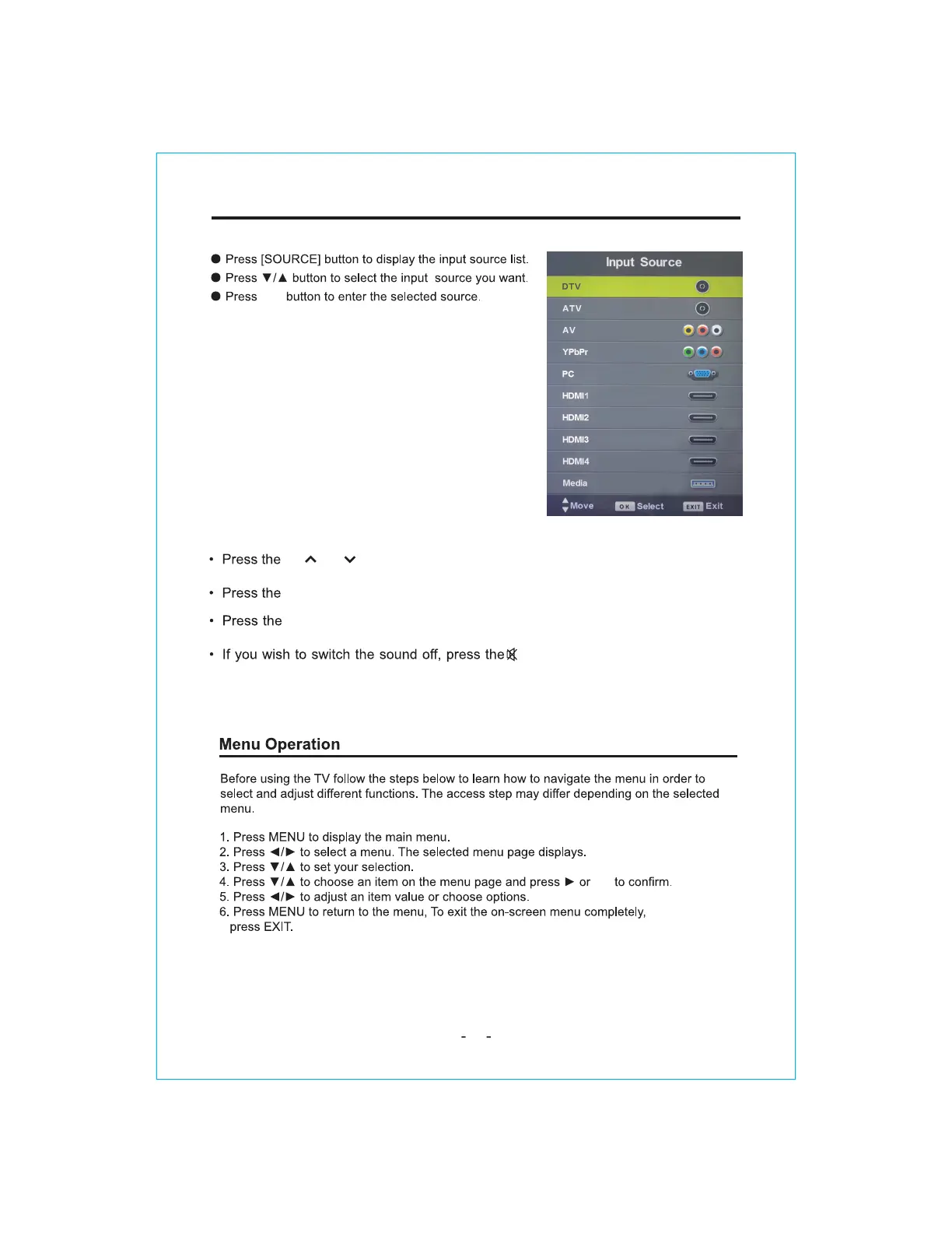SONIQ E65UV40A - Menu Operation Guide; Input Source Selection; Channel Operations