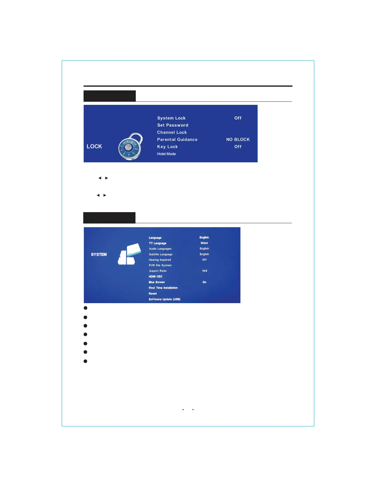 Hotel Mode:This feature is used to restrict user access to some TV features and to modify TV Settings.